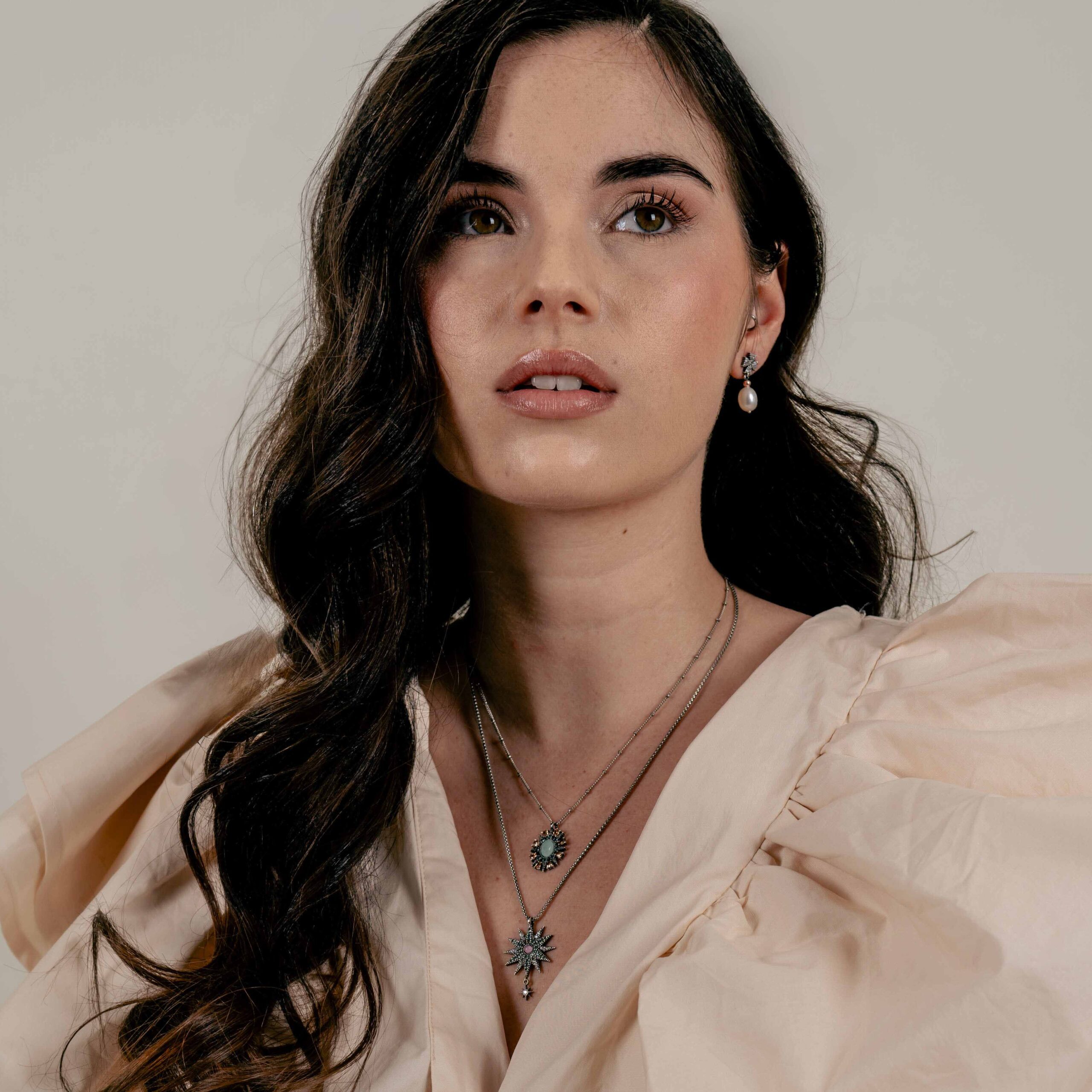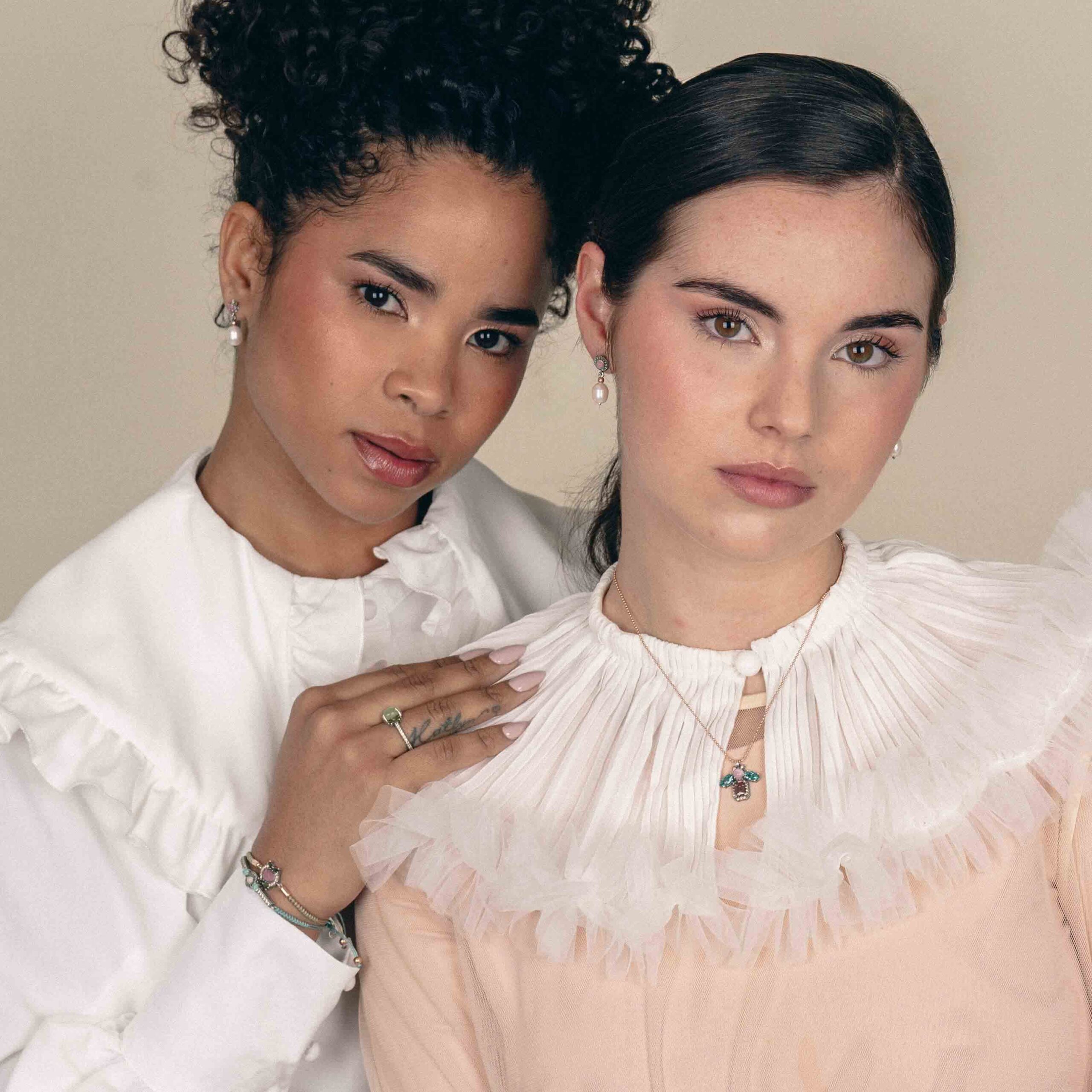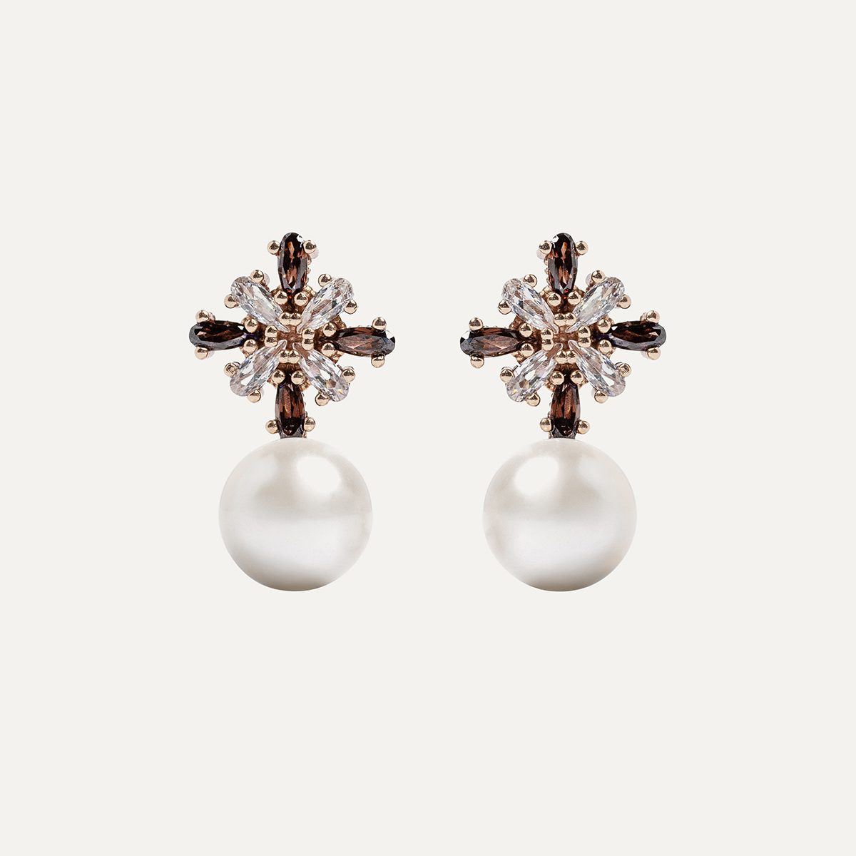 Pendientes de plata de ley 925 con circonitas y cabujón. Disponible en varios colores.