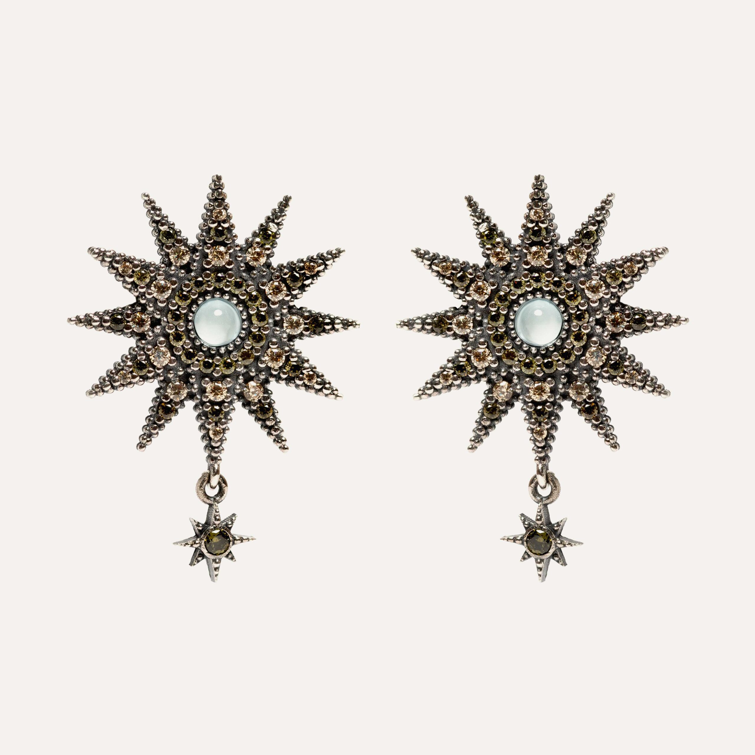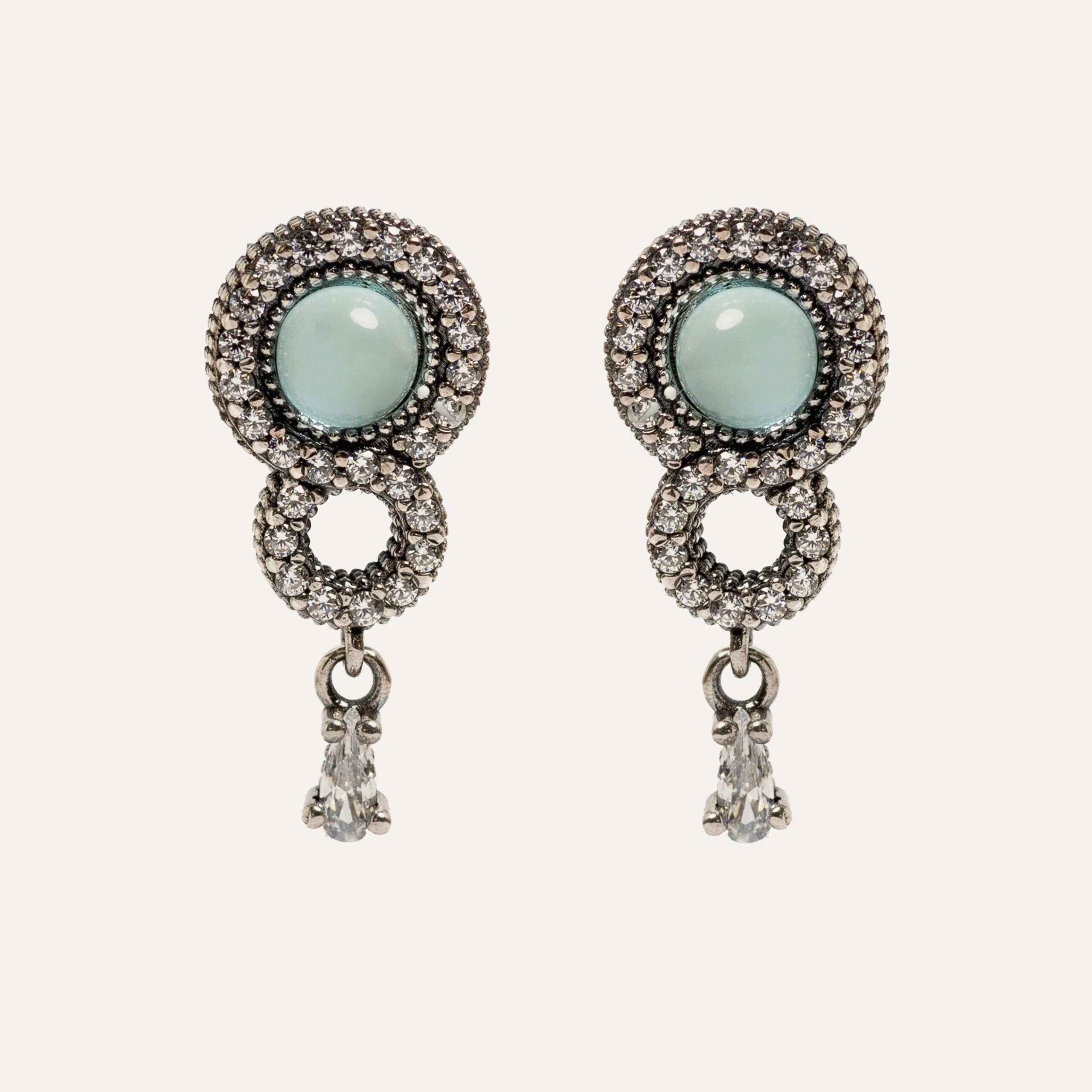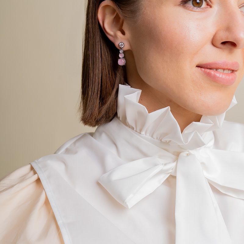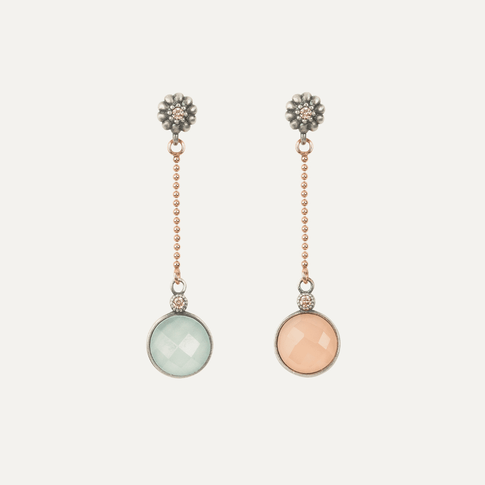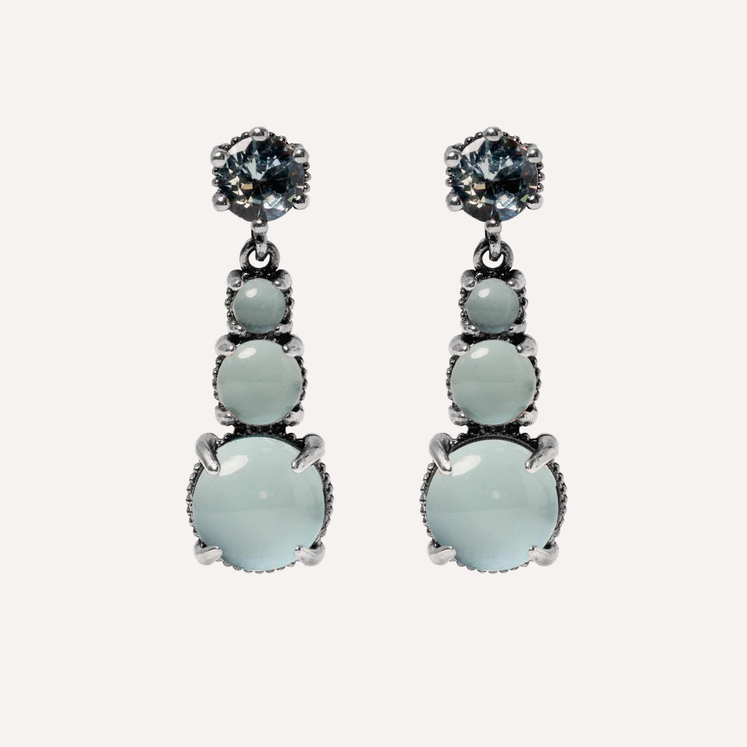 Pendientes de plata de ley 925, cuarzo y circonitas en dos acabados: plata envejecida o baño de oro rosa de 24 kt.