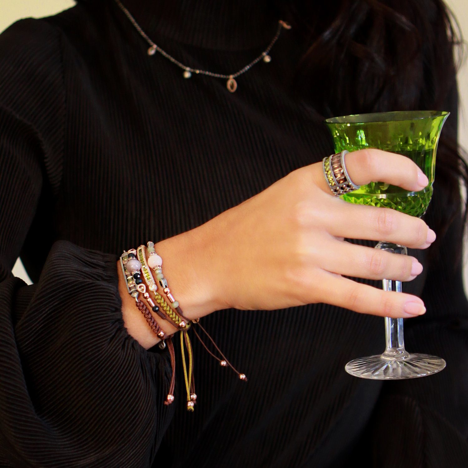 Pulsera de plata de ley con baño de oro rosa de 24 kt, circonitas y nylon.