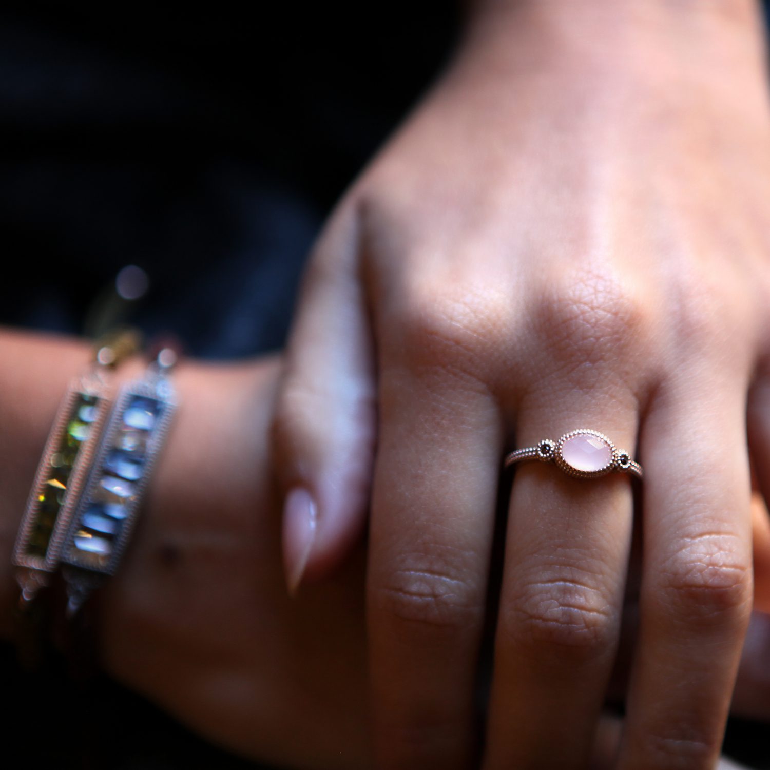 Conjunto de anillo, pendientes y pulsera en plata envejecida y circonitas.