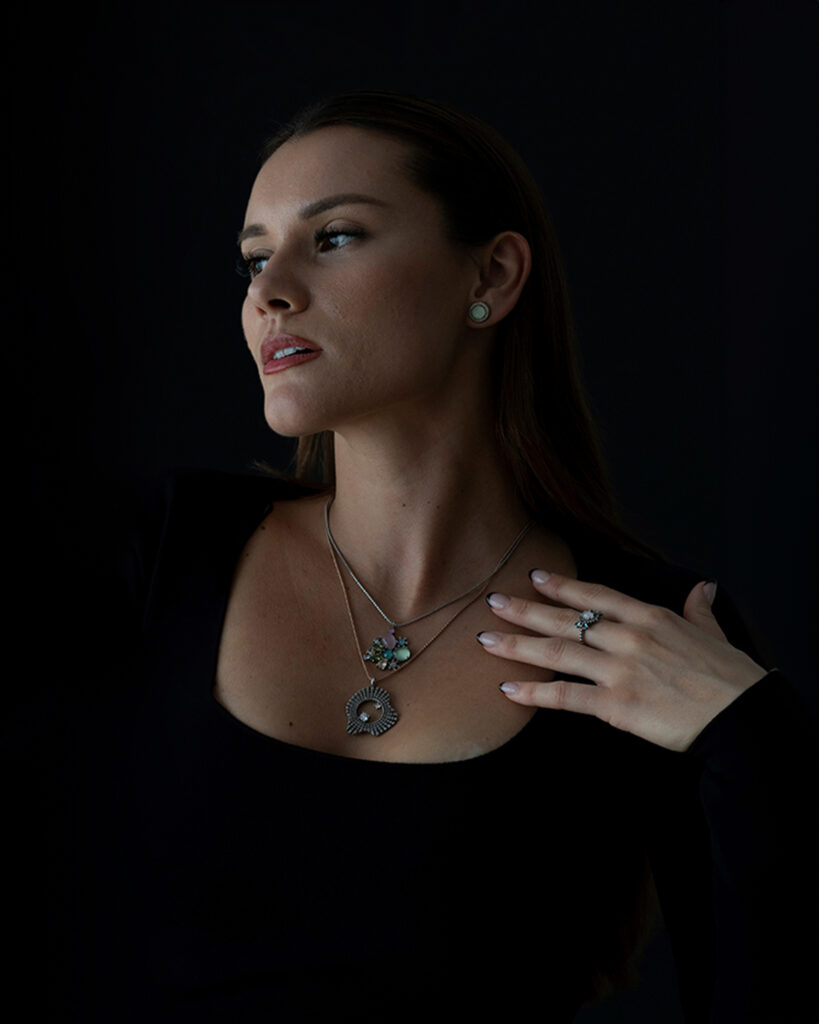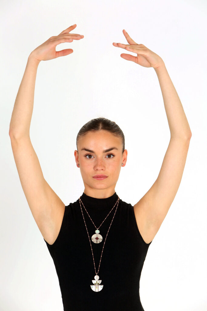 Para prendas de cuello alto, los collares largos son ideales. Los colgantes maxi de la colección Yasmin, son una opción sofisticada que aporta un toque de elegancia a cualquier look.