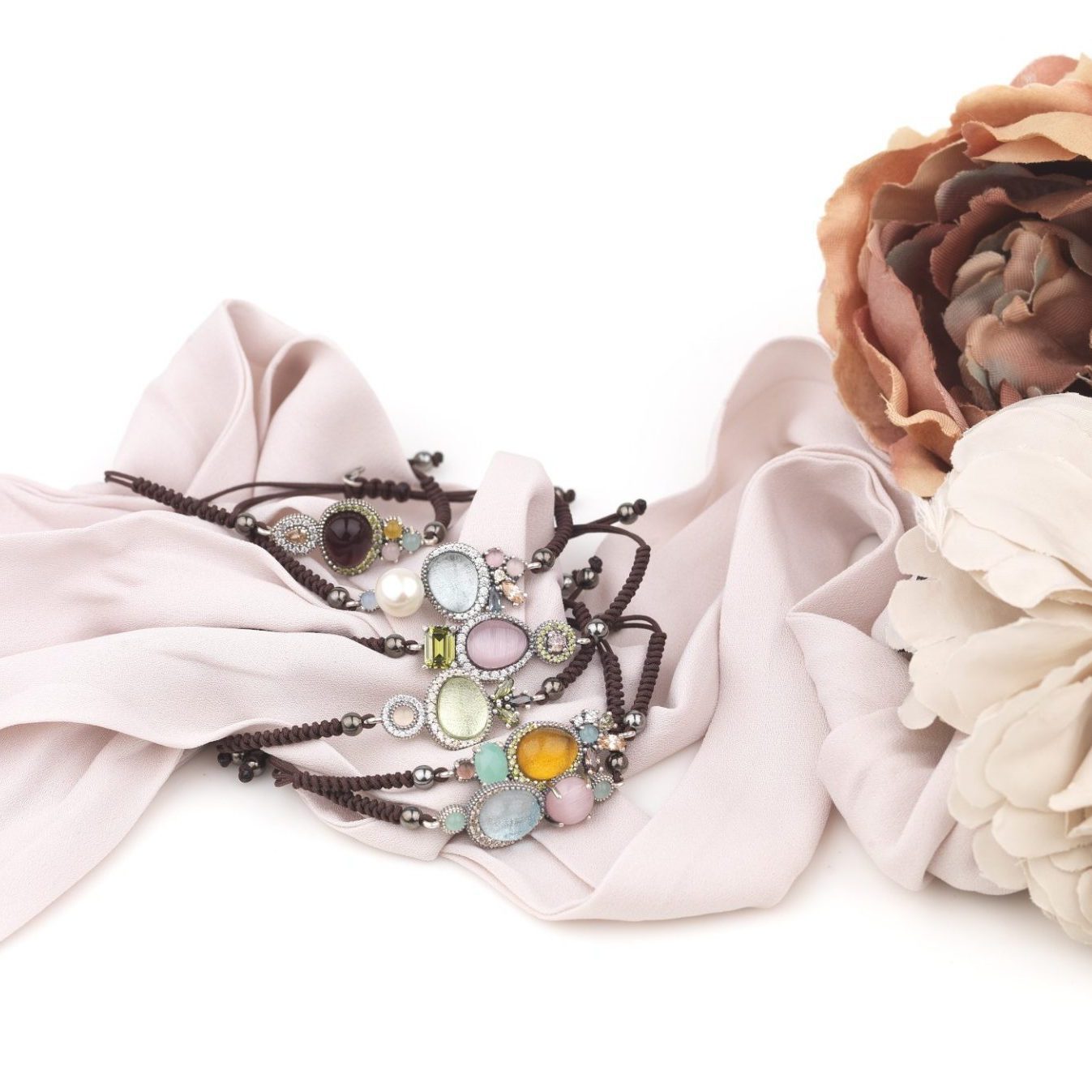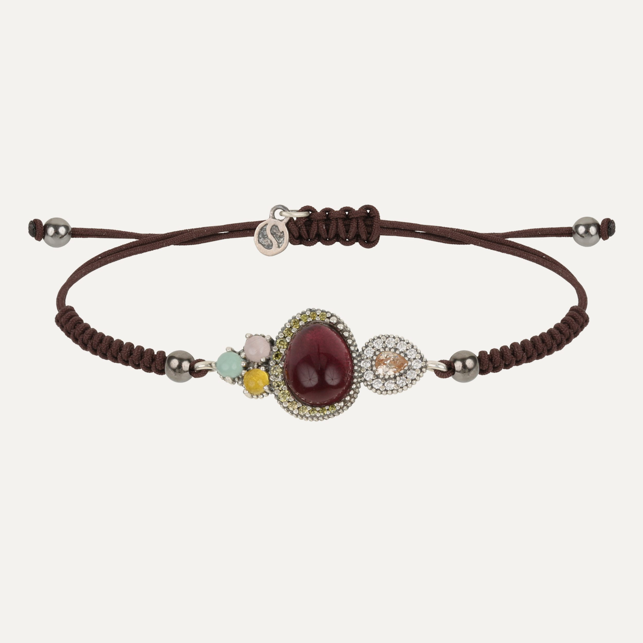 Pulsera de plata de ley 925 con turmalina rosa, calcedonia, citrino, cuarzo rosa, circonitas y nylon.