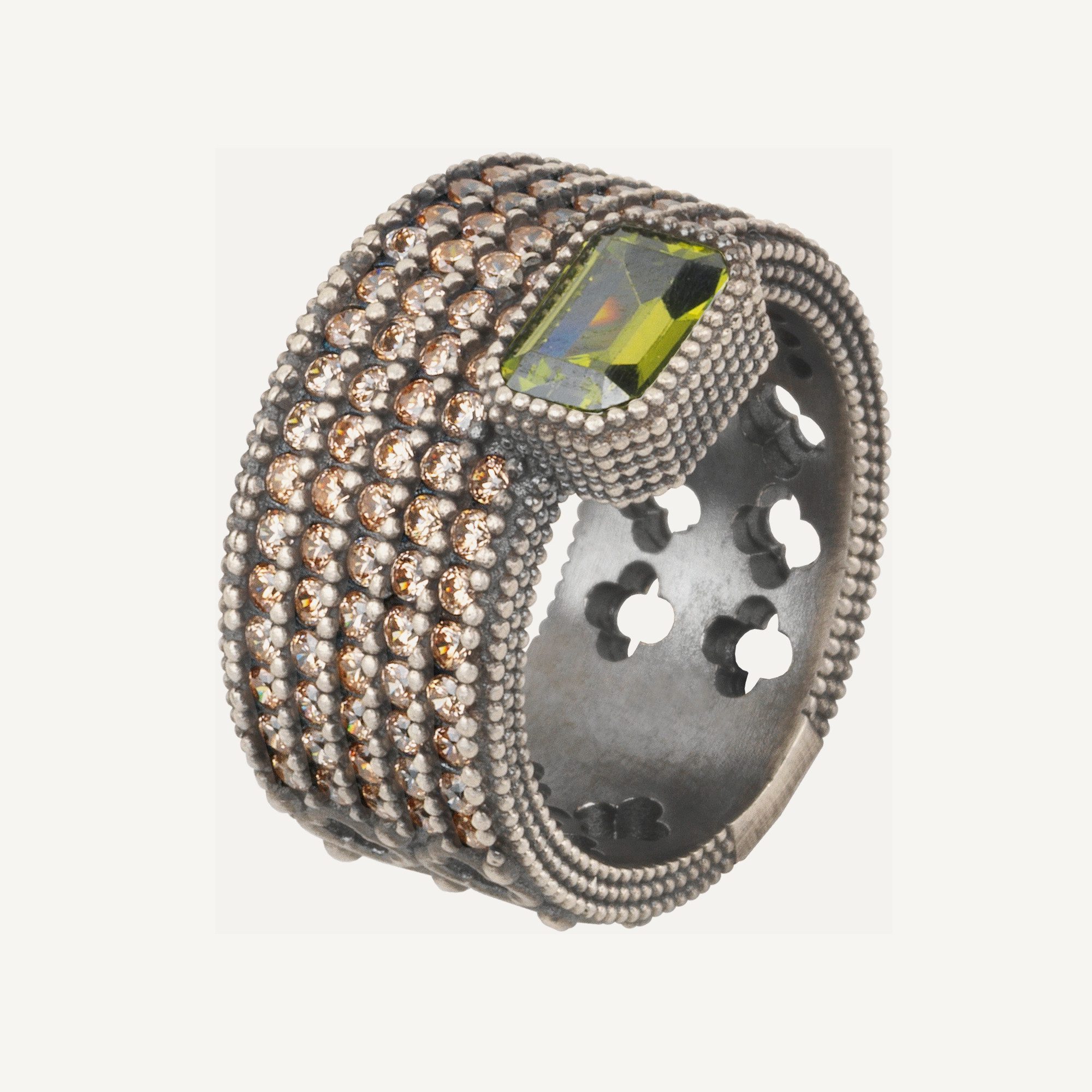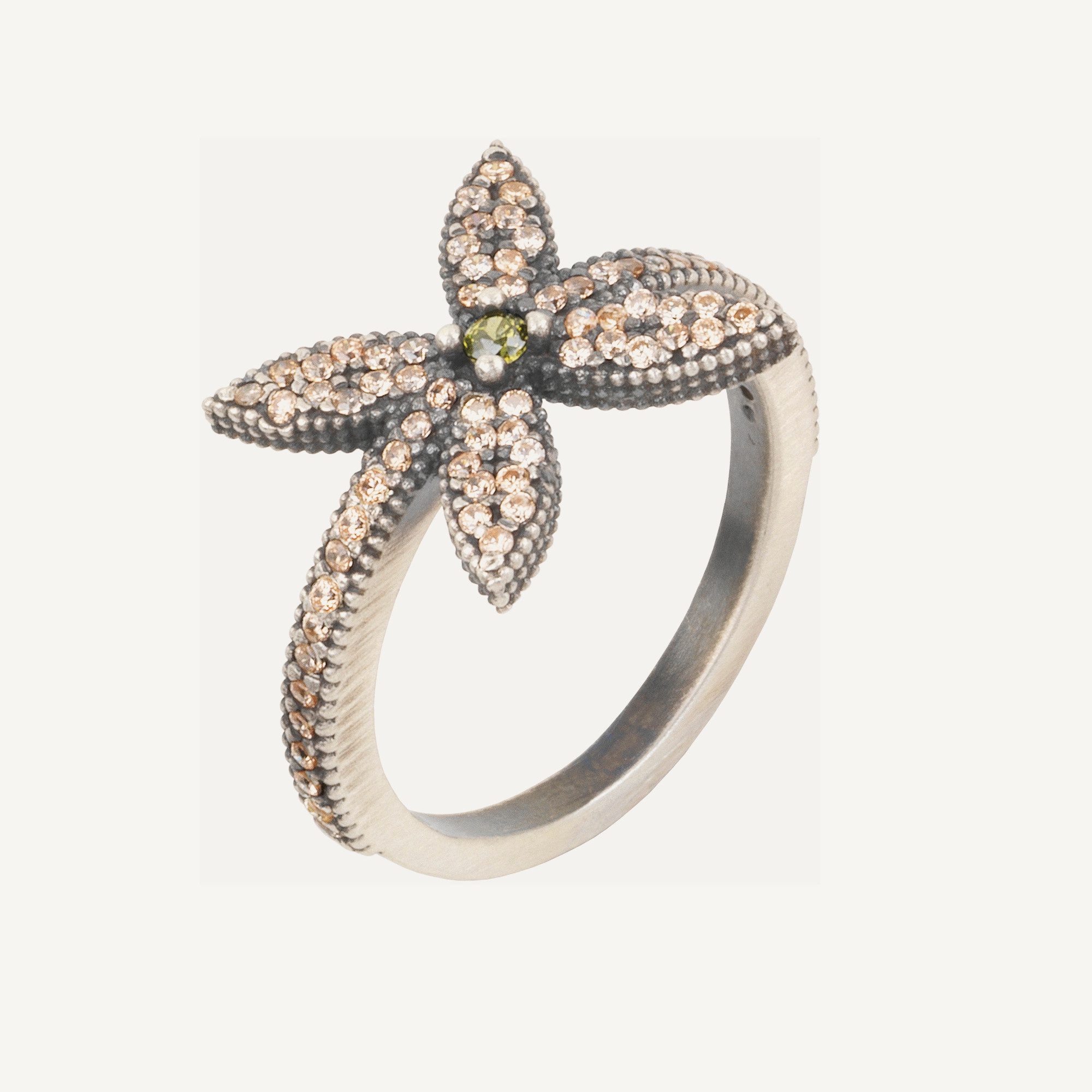 Anillo de plata de ley 925 con acabado envejecido y circonitas.
