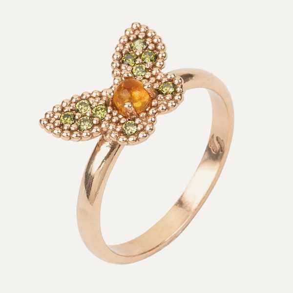 Anillo de plata de ley 925 con baño de oro rosa de 24 kt, citrino y circonitas.