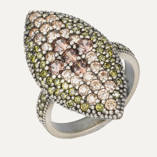 Anillo de plata de ley, cuarzo fumé y circonitas.