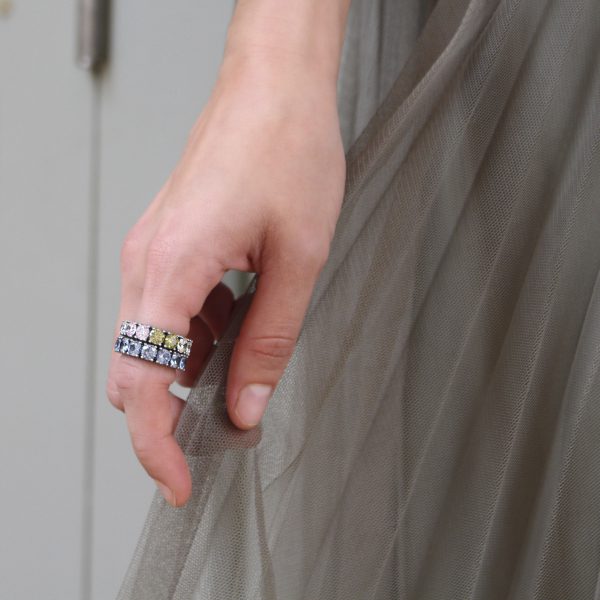 Anillo de plata de ley 925 y circonitas en cuatro combinaciones de colores a elegir.