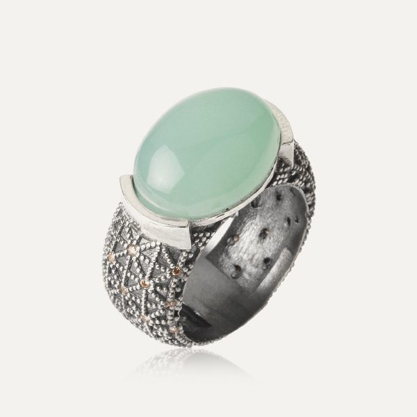 Anillo de plata de ley 925, calcedonia, turmalina rosa y circonitas.