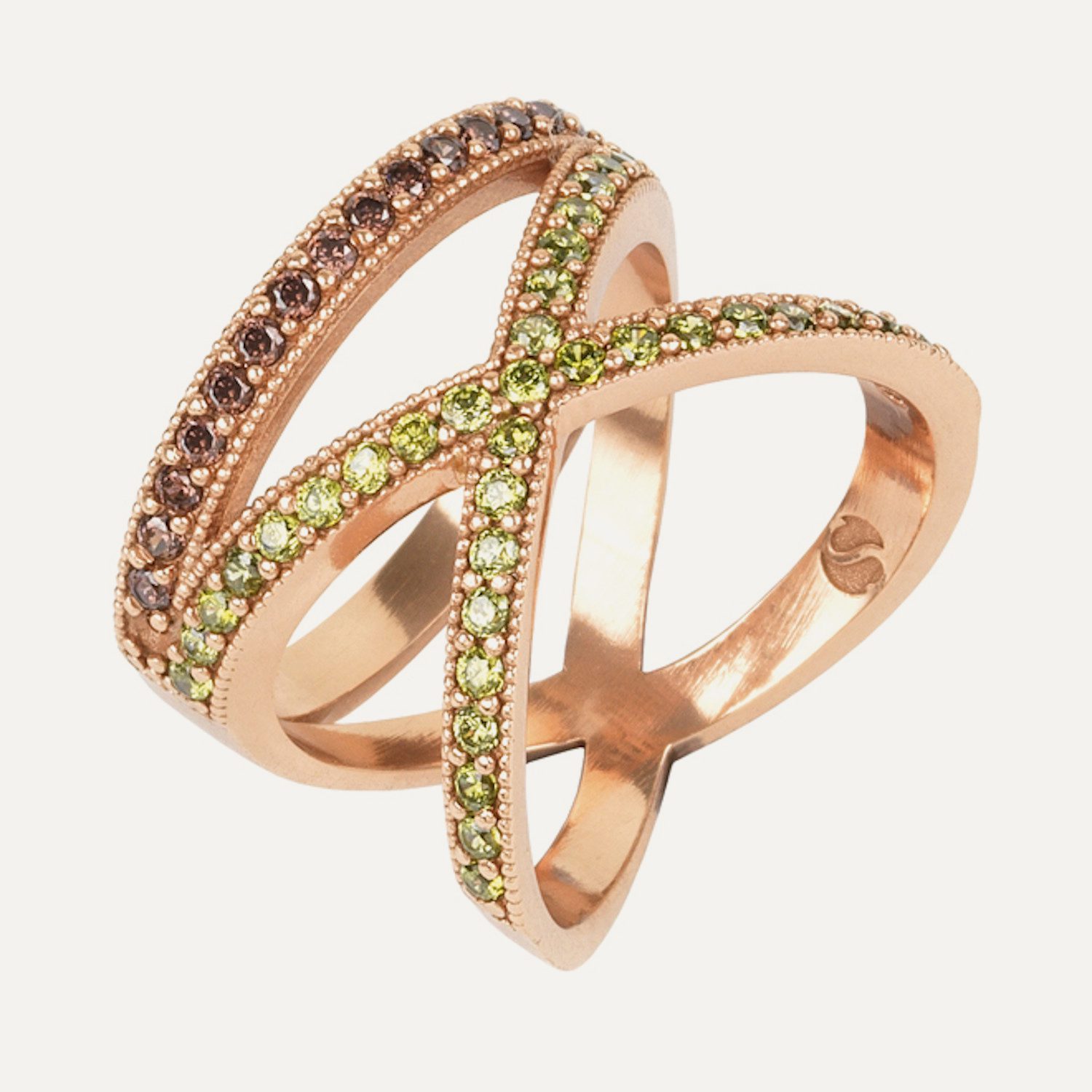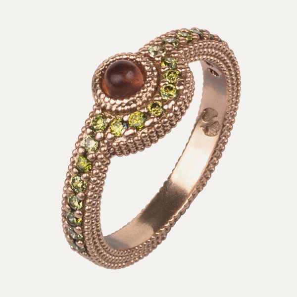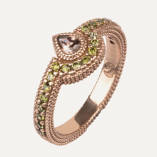 Anillo de plata de ley 925 con baño de oro rosa de 24 kt y circonitas.
