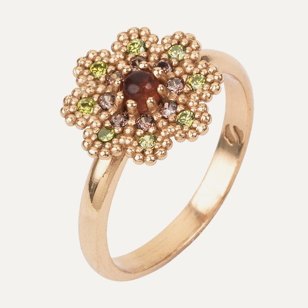 Anillo de plata de ley 925 con baño de oro rosa de 24 kt, turmalina rosa y circonitas.