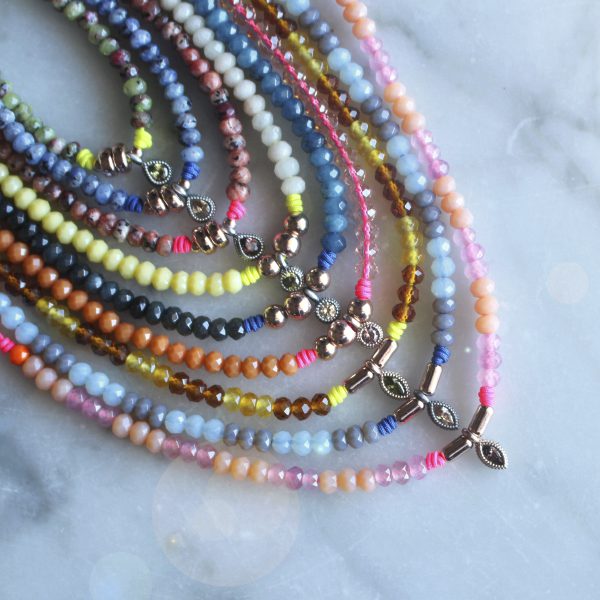 Colgante de plata de ley 925 bañada en oro rosa de 24 kt con ágatas, circonitas, cuentas de cristal y nylon, en tres combinaciones de colores a eleg...