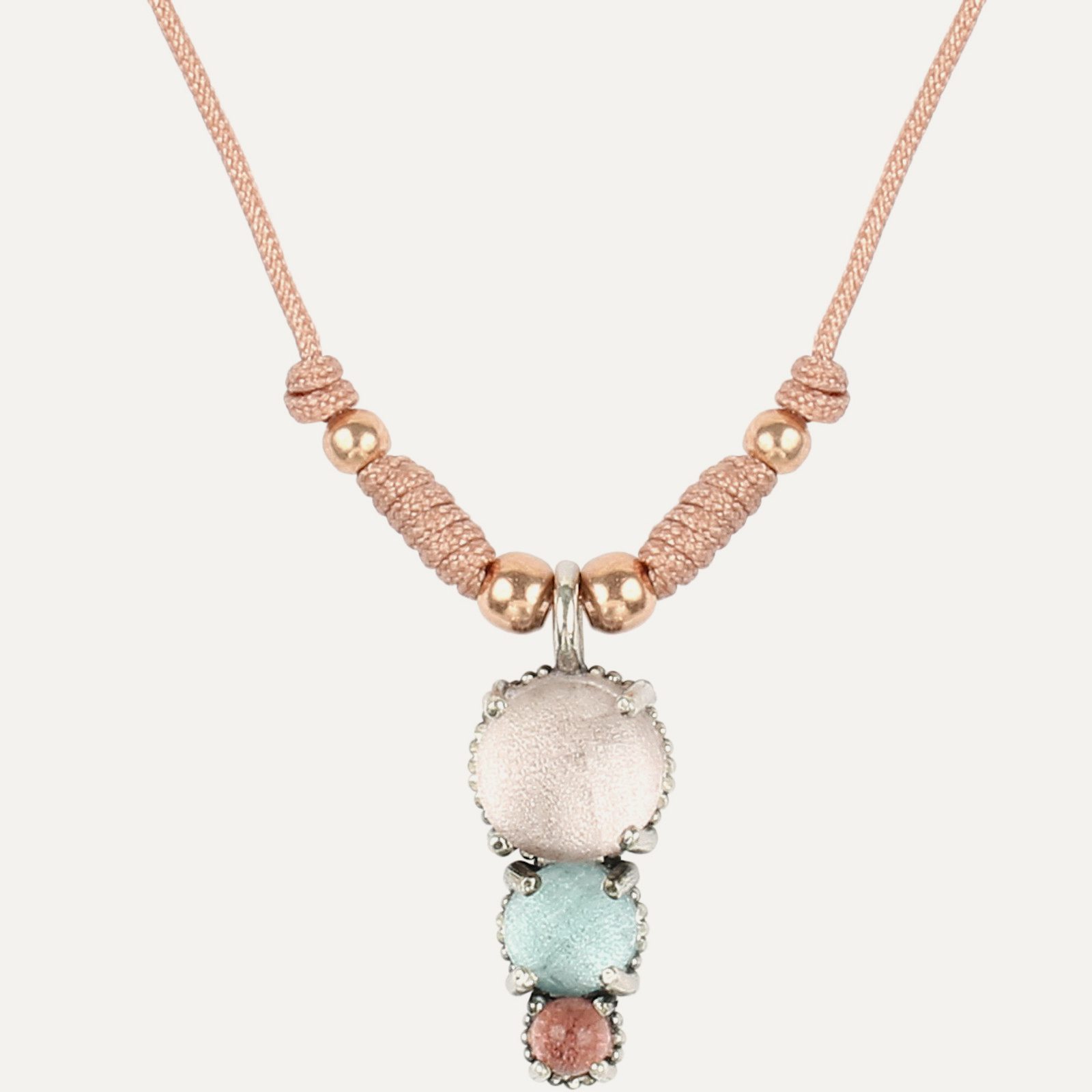 Colgante de plata de ley 925 con cuarzo rosa, cuarzo color aguamarina, turmalina rosa y nylon.