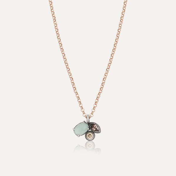 Colgante de plata de ey 925, cuarzo rosa, calcedonia azul y circonitas.
