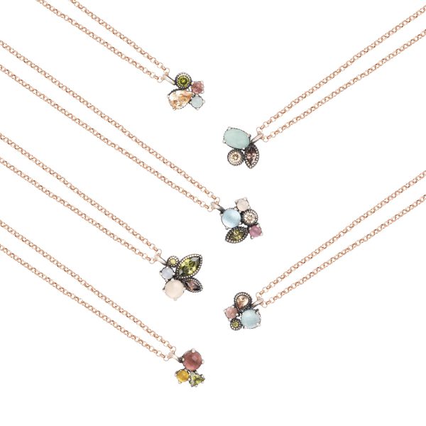 Colgante de plata de ey 925, calcedonia, turmalina rosa y circonitas.