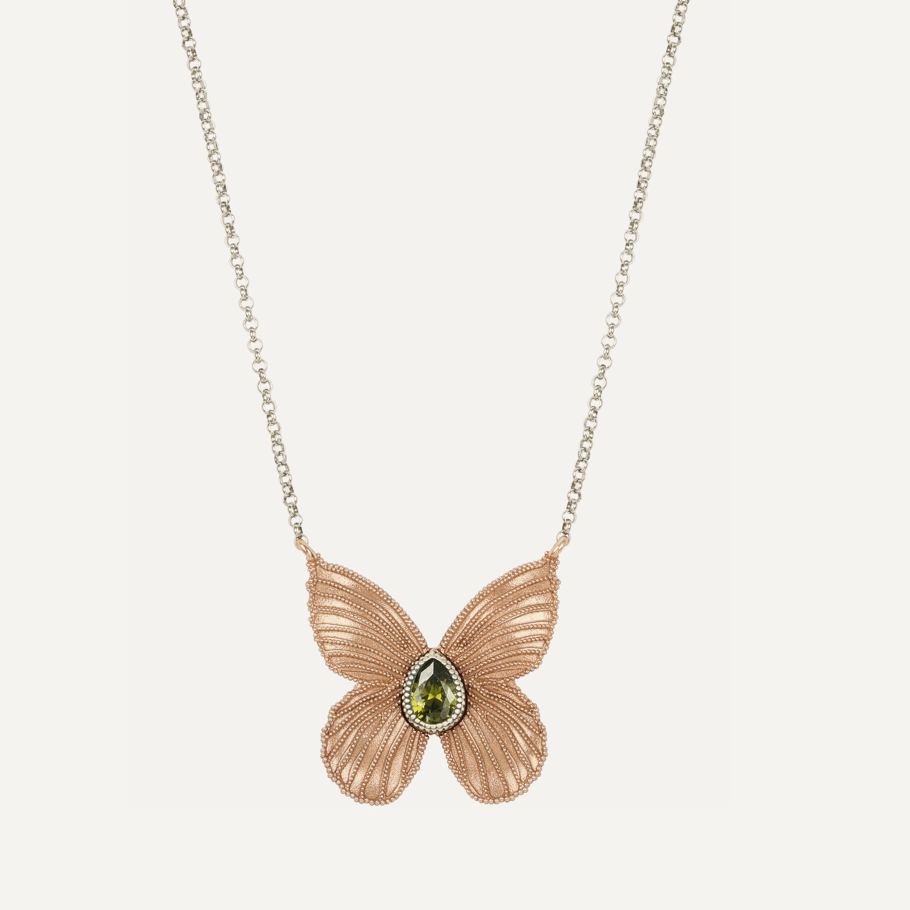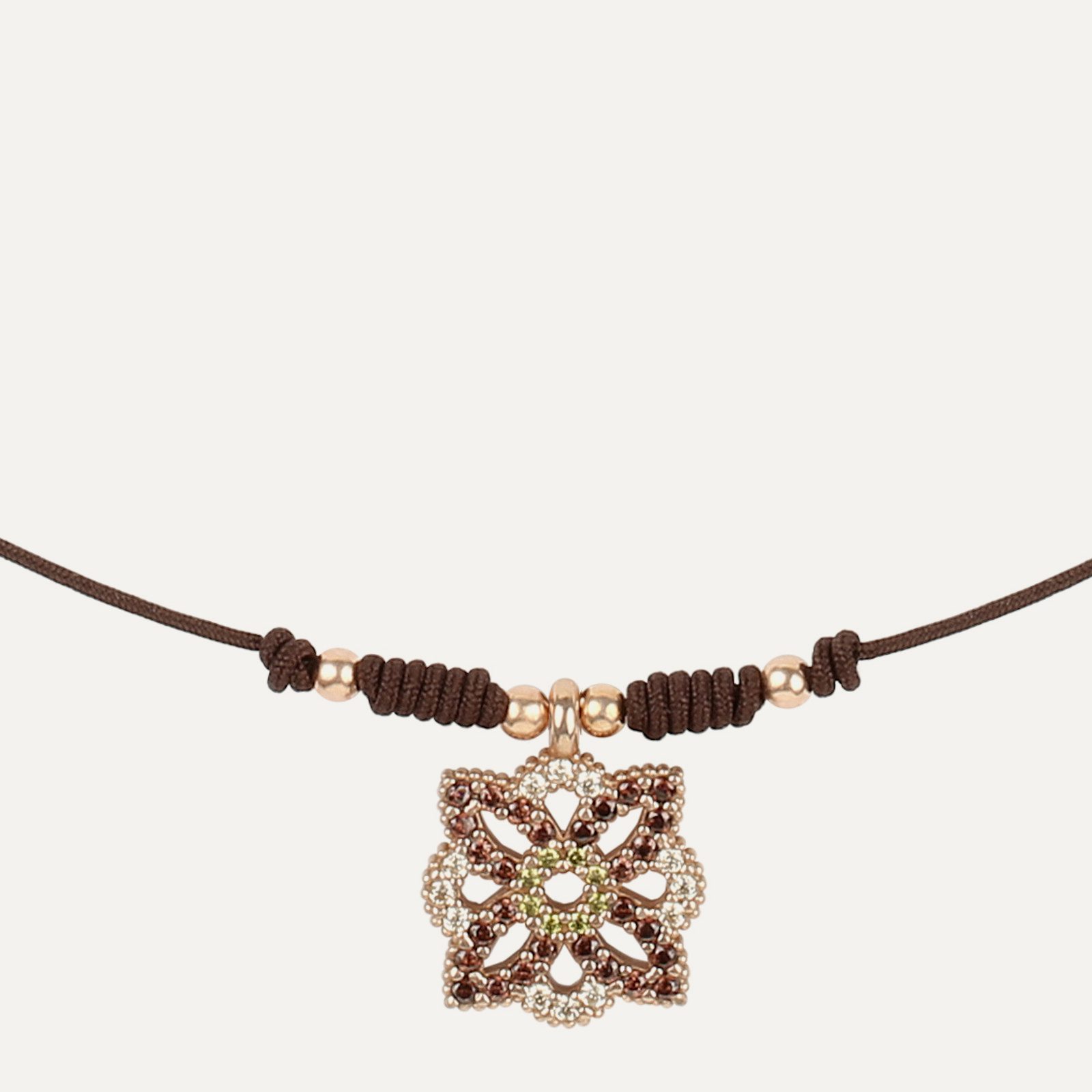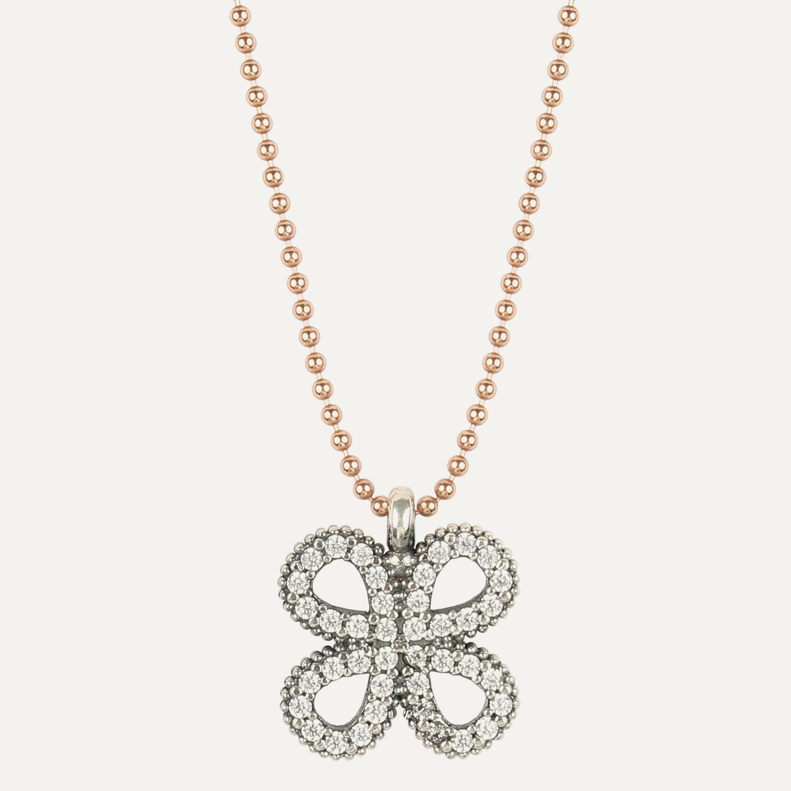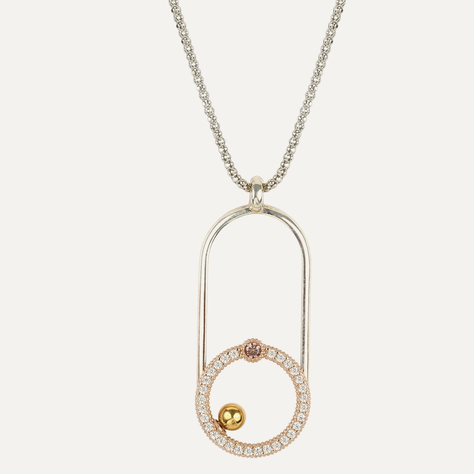 Colgante de plata de ley 925 con baño de oro rosa de 24kt y baño de oro amarillo de 24kt y circonitas.