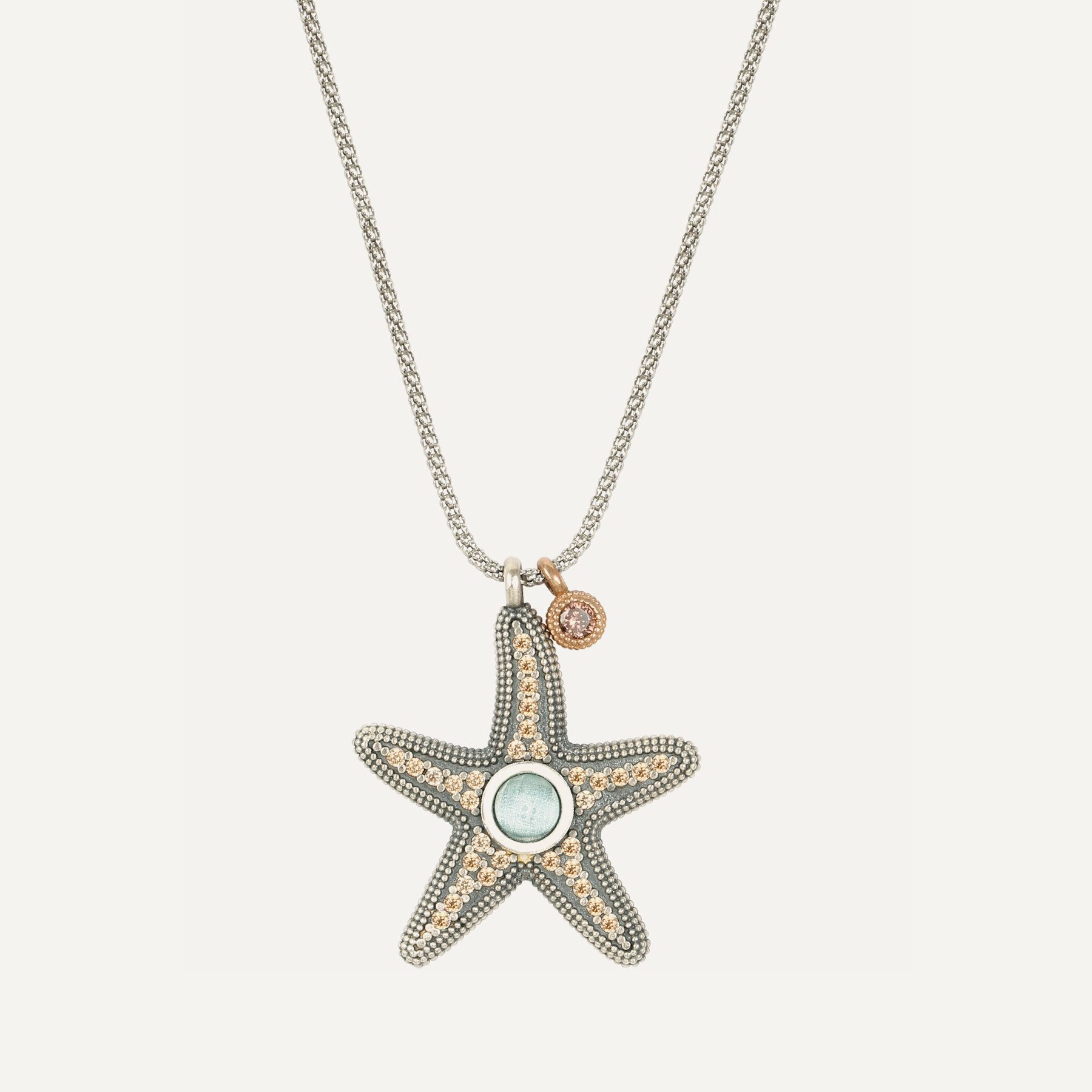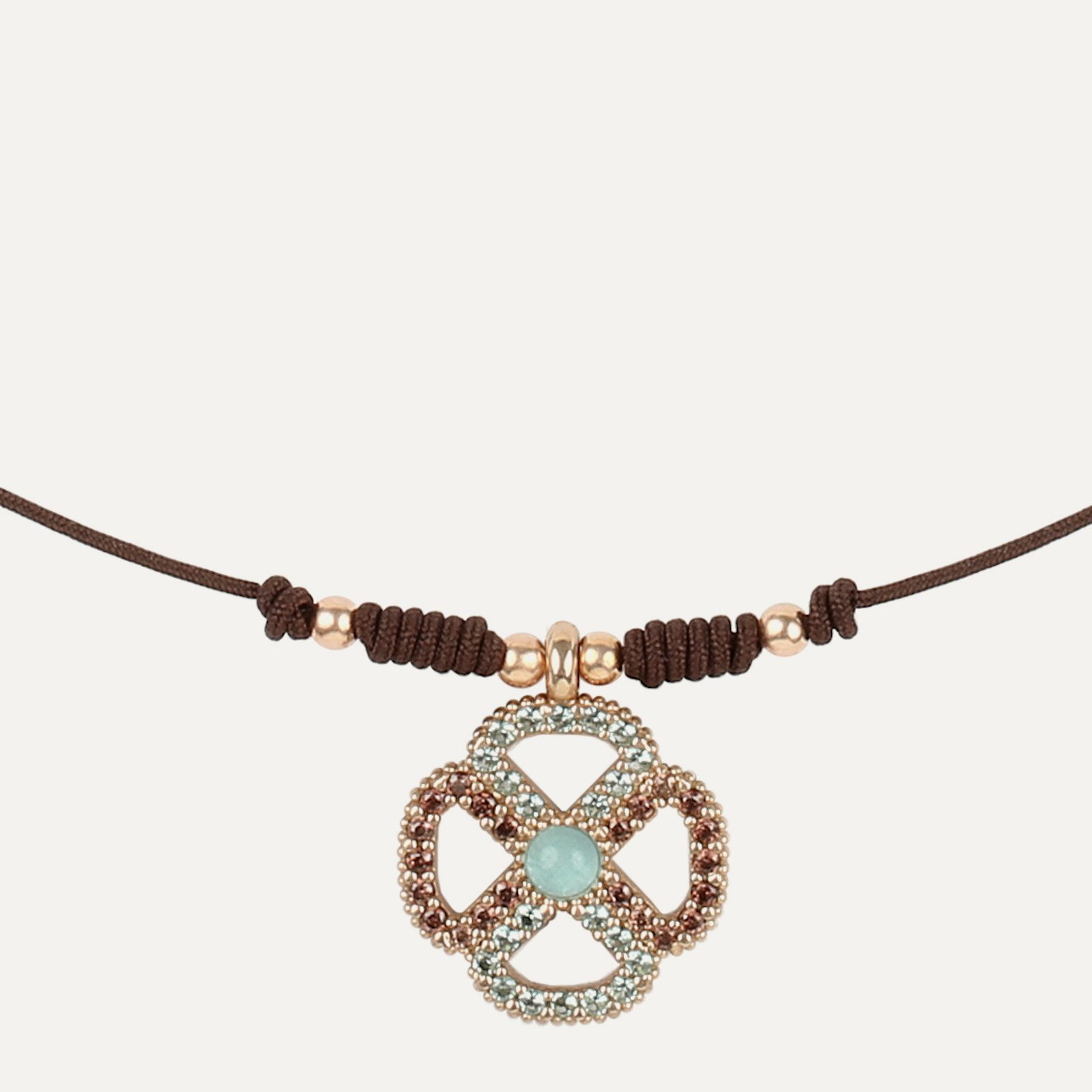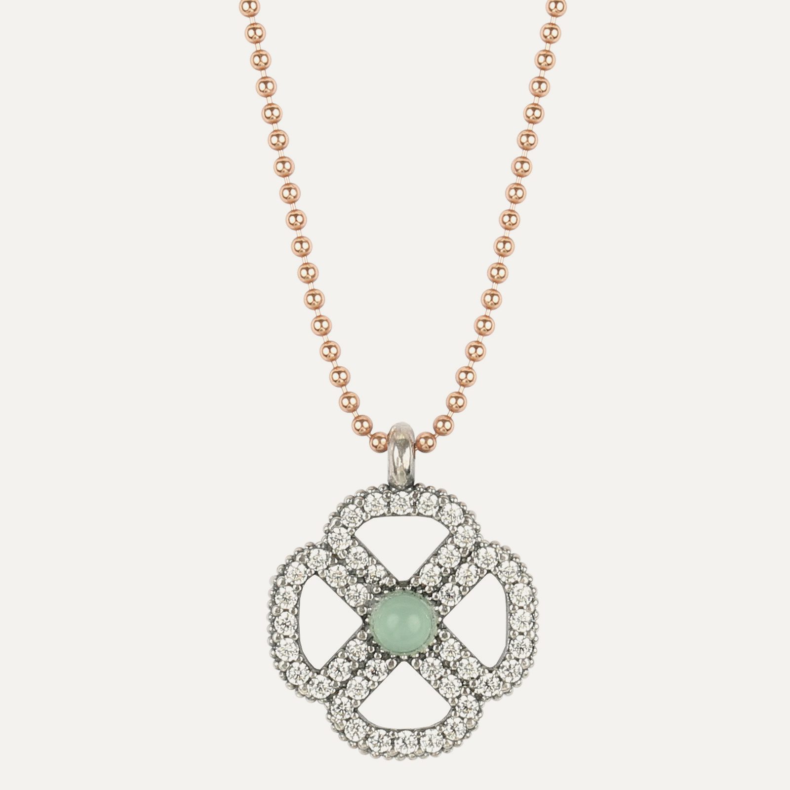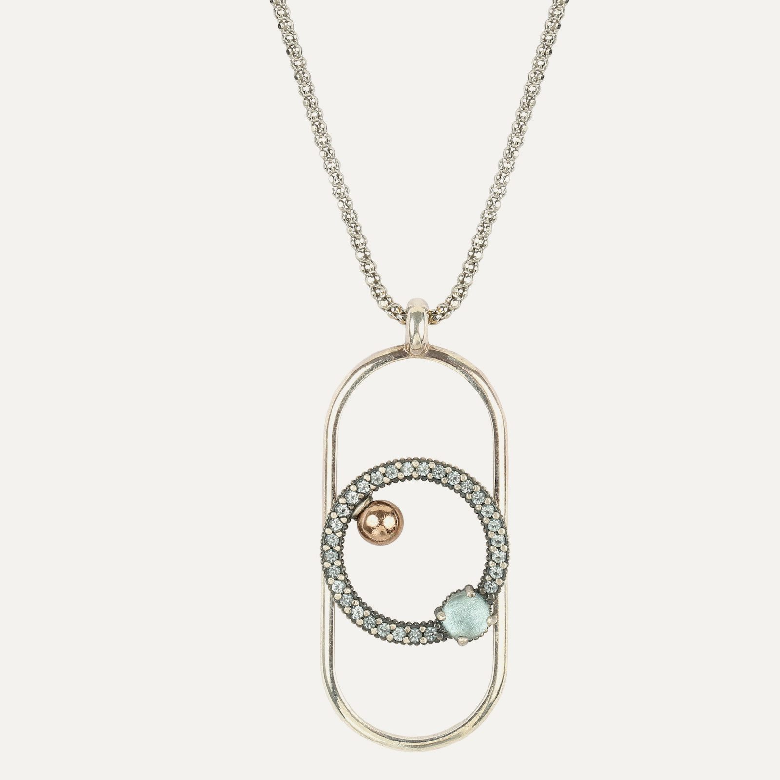 Colgante de plata de ley 925 con baño de oro rosa de 24kt, cuarzo color aguamarina y circonitas.