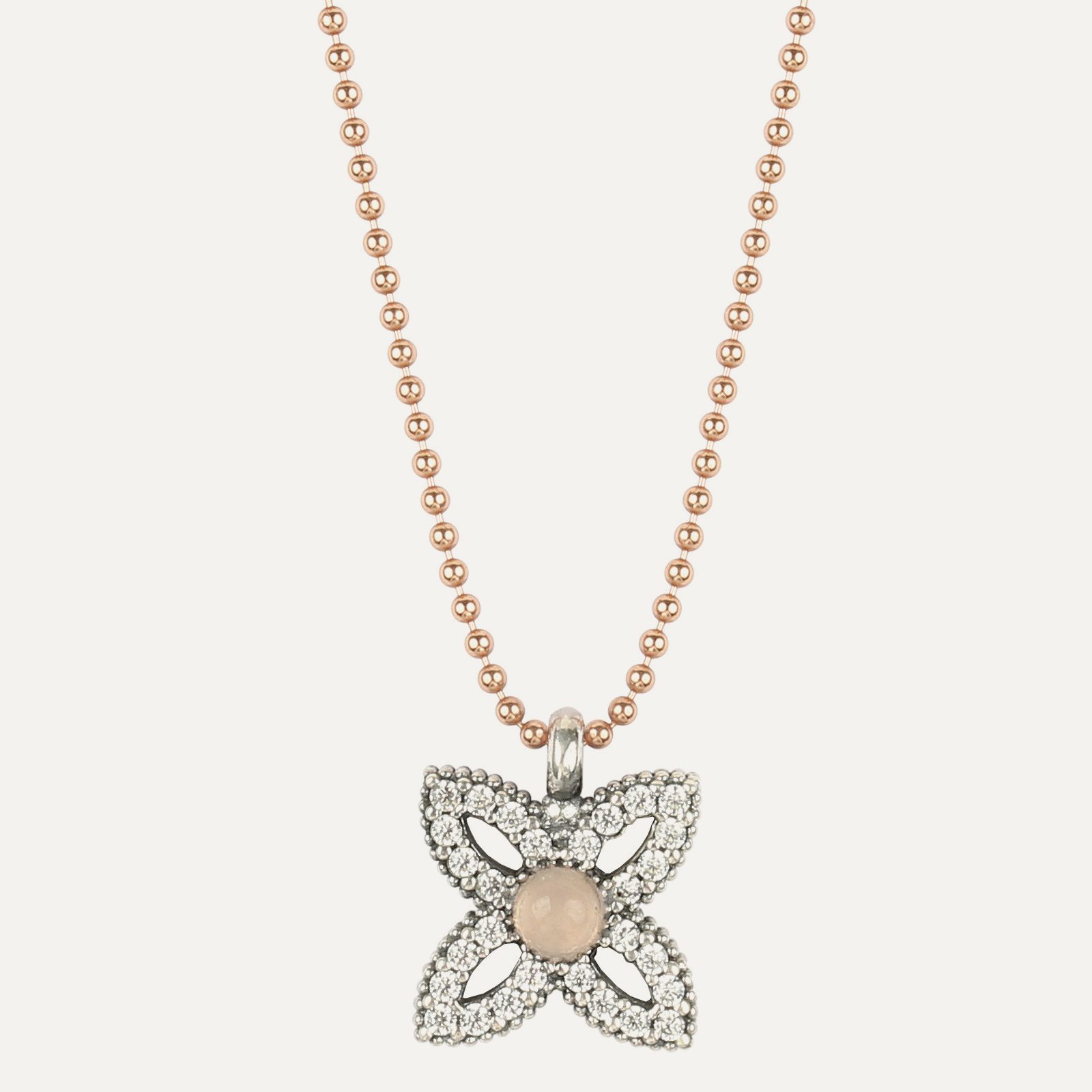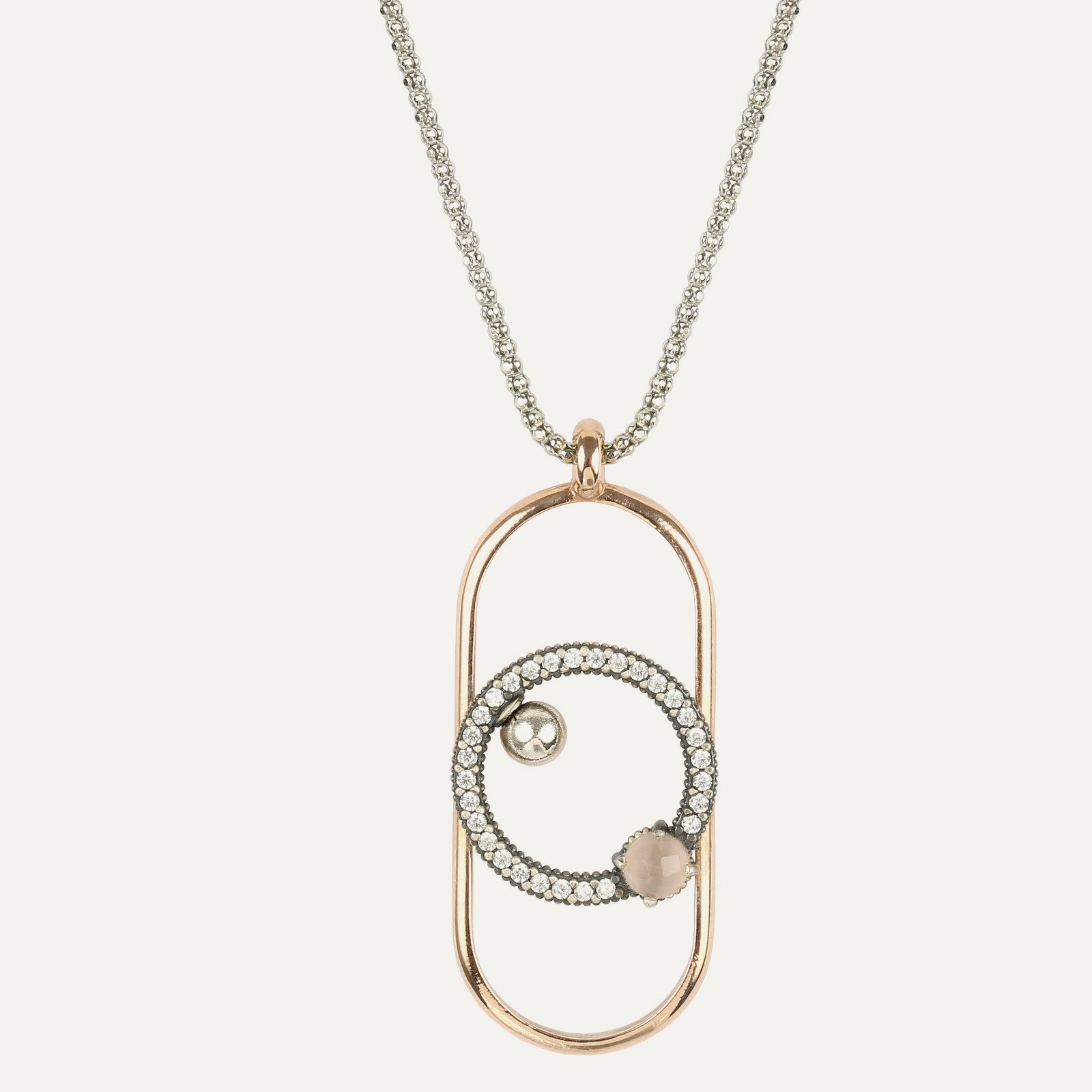 Colgante de plata de ley, cuarzo rosa y circonitas.