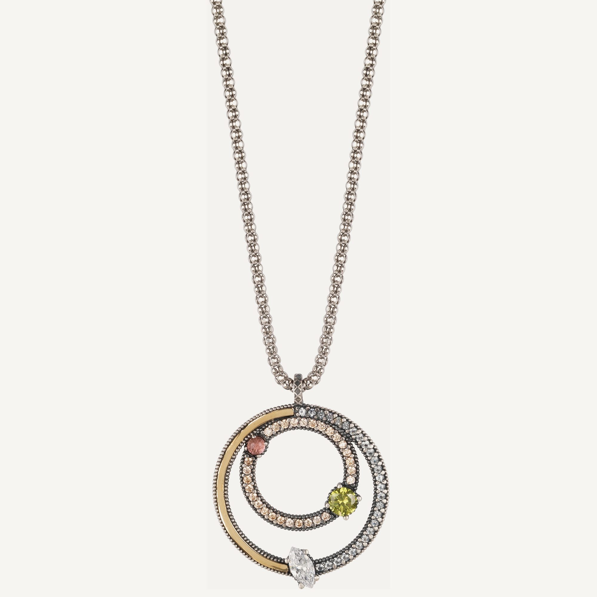 Colgante de plata de ley 925 con acabado envejecido, cuarzos de colores y circonitas.