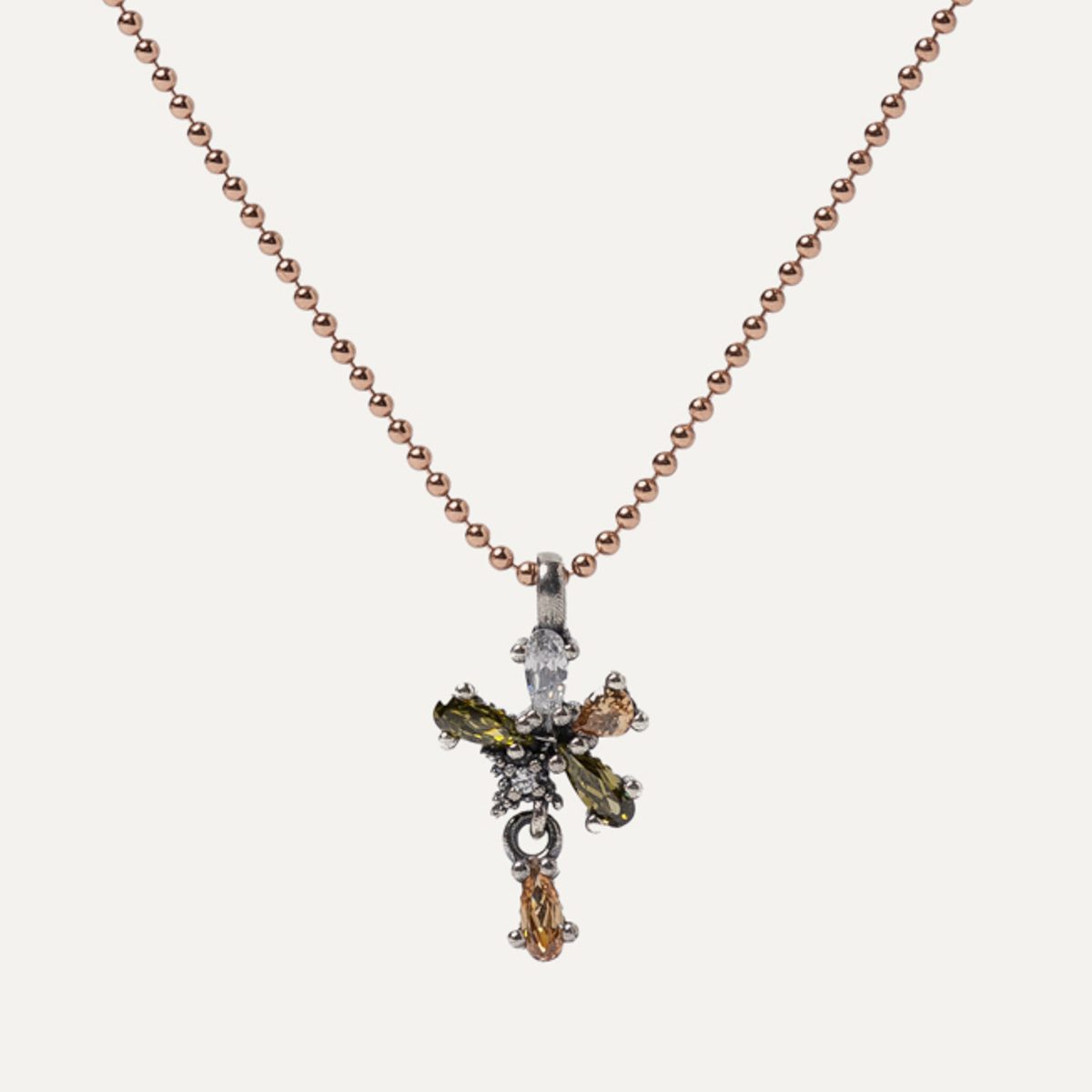 Colgante de plata de ley 925 con cuarzo rosa, turmalina rosa, citrino, cuarzo gris y circonitas.