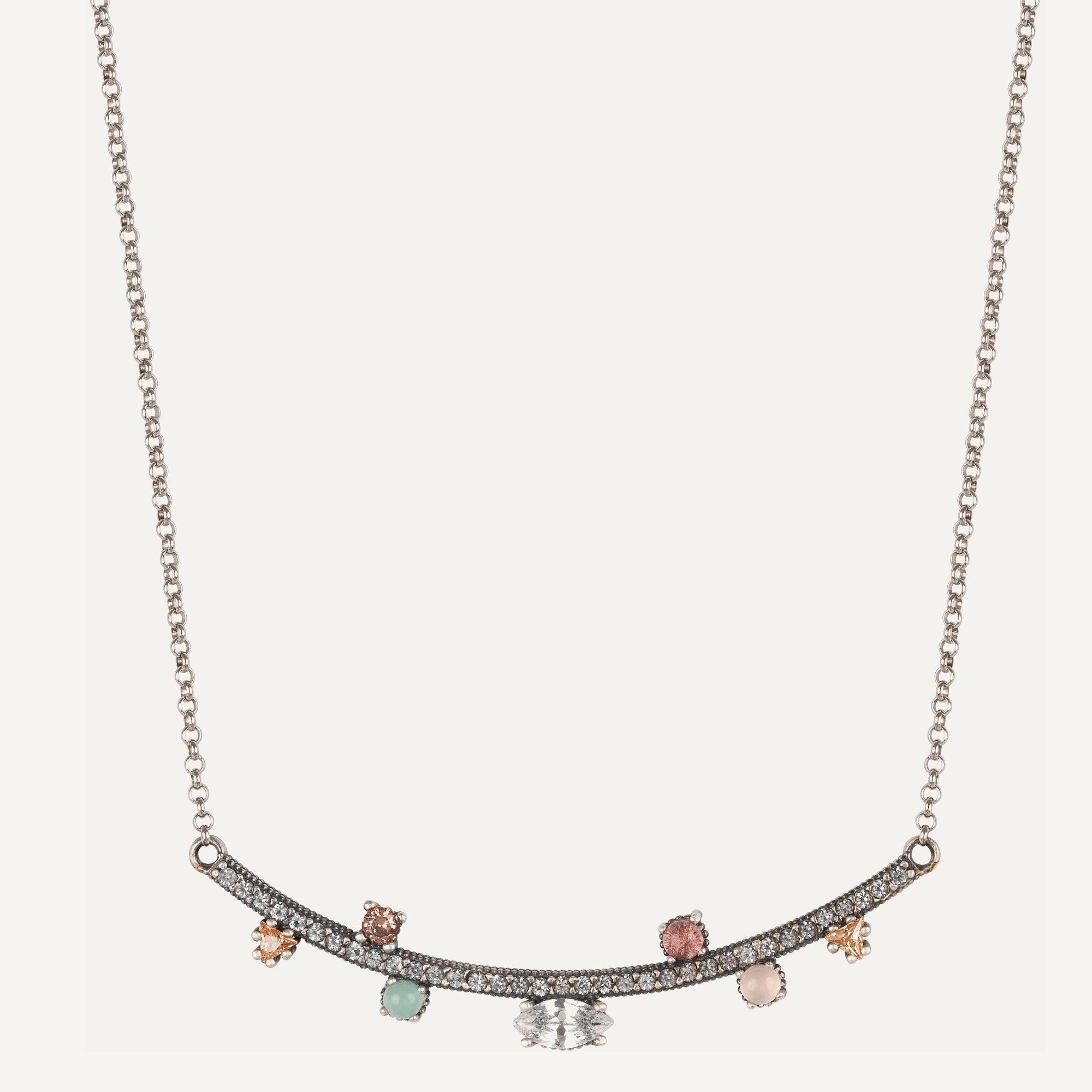 Colgante de plata de ley 925, turmalina rosa, calcedonia, cuarzo rosa y circonitas.