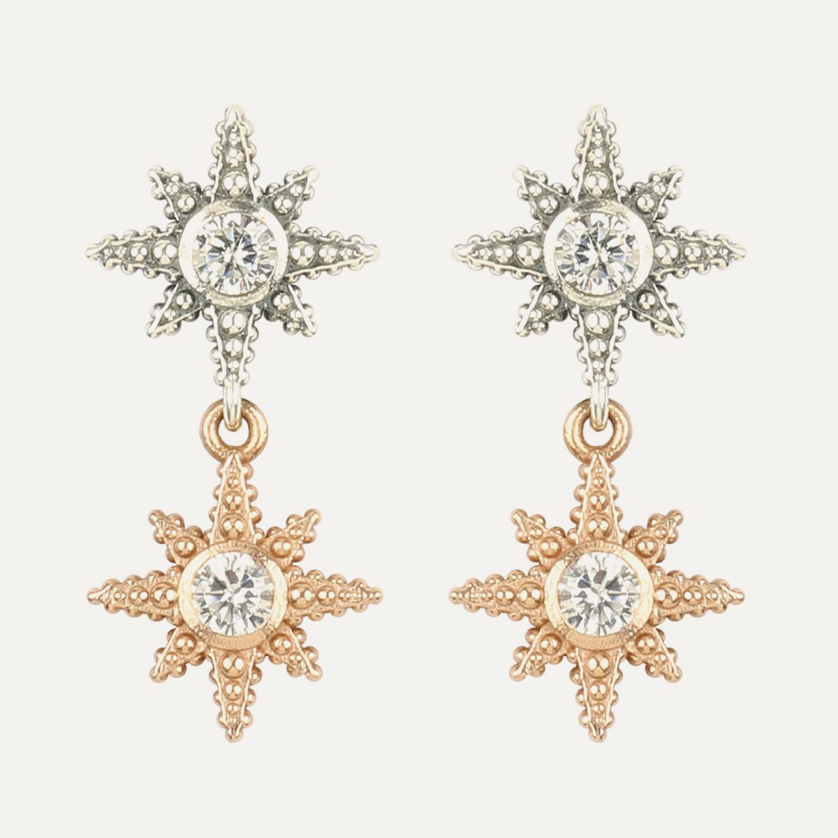 Pendientes de plata de ley 925 con baño de oro rosa y circonitas.