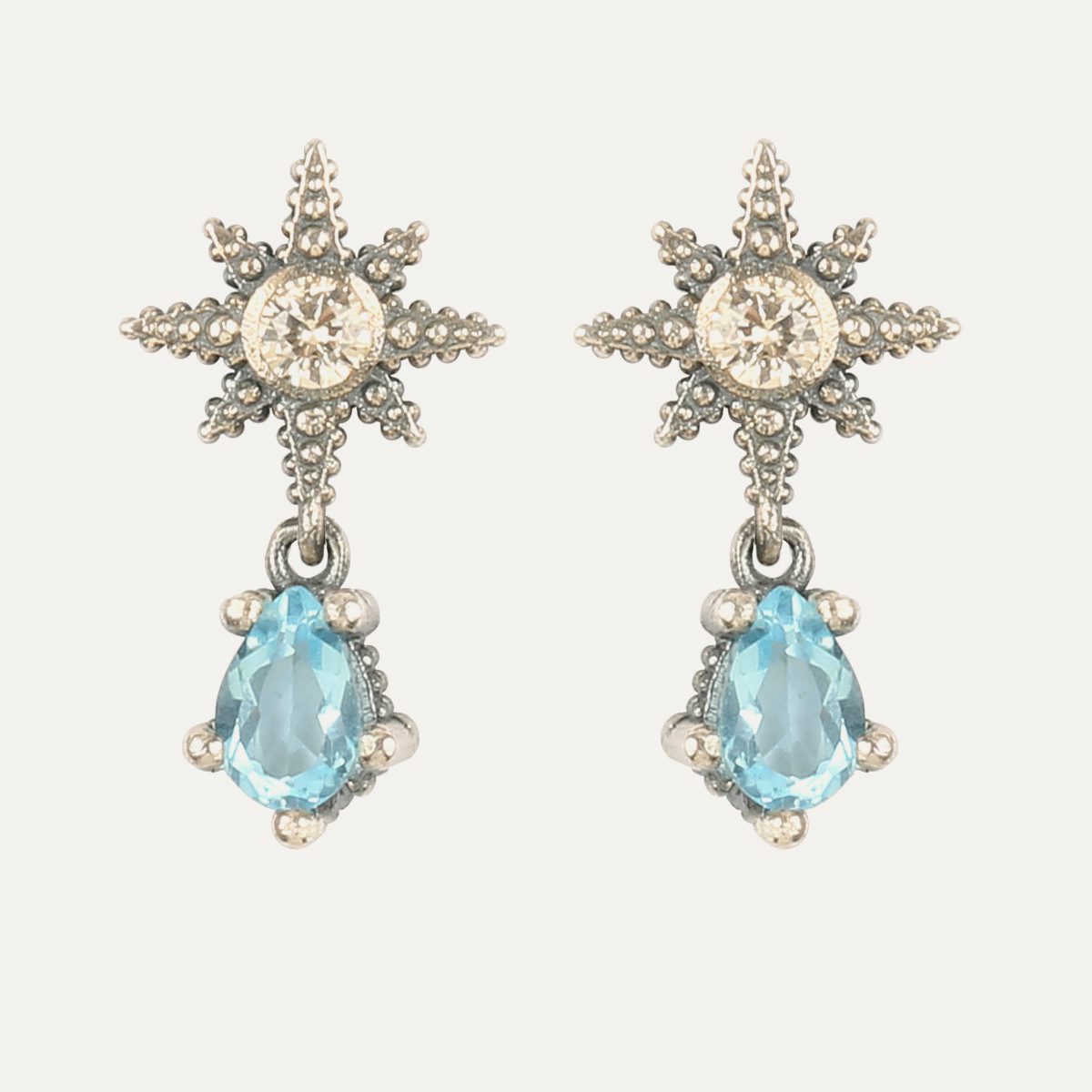 Pendientes de plata de ley 925 con cuarzo color aguamarina y circonitas.