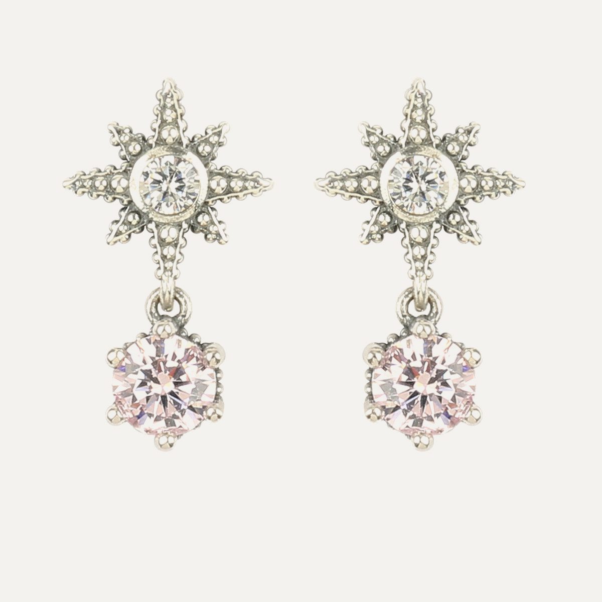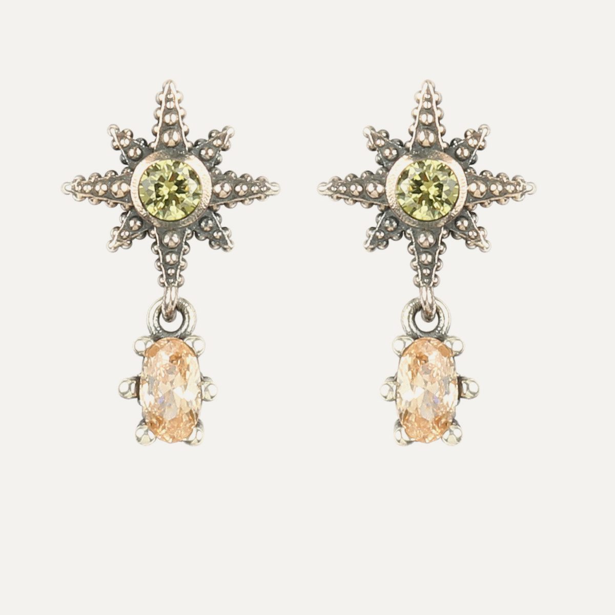Pendientes de plata de ley 925 con cuarzo y circonitas. Disponible en dos acabados con diferentes colores.