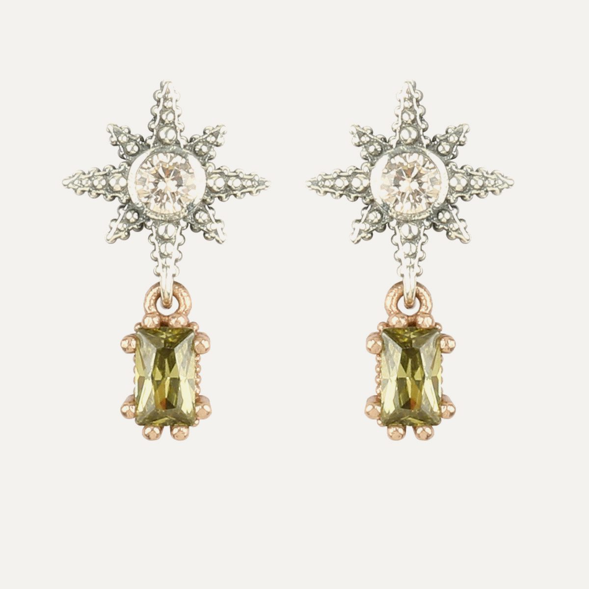 Pendientes de plata de ley 925, cuarzo y circonitas.