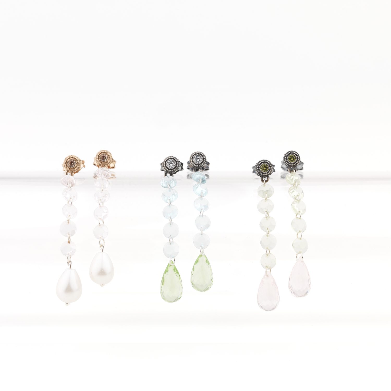 Pendientes de plata de ley 925, cuarzo y circonitas. Tres combinaciones de colores a elegir.