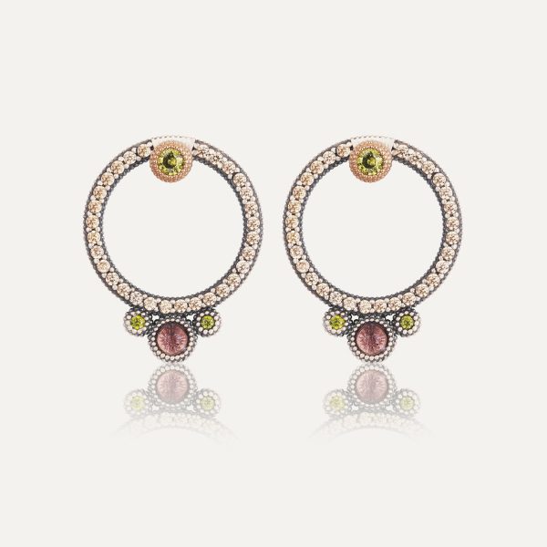 Pendientes de plata 925 con acabado envejecido, turmalina rosa y circonitas.