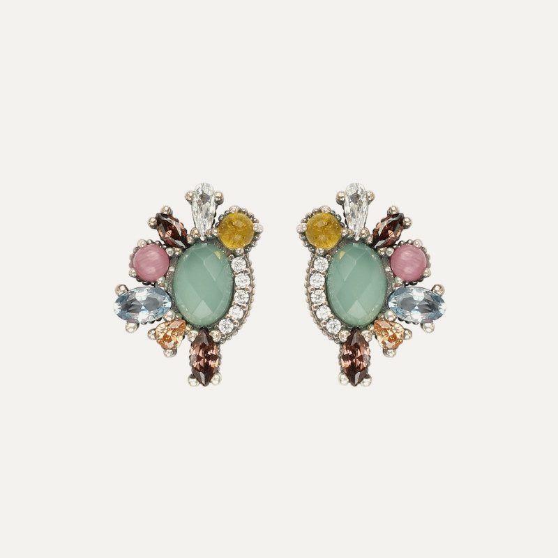 Pendientes de plata de ley 925, símil ópalo y circonitas.