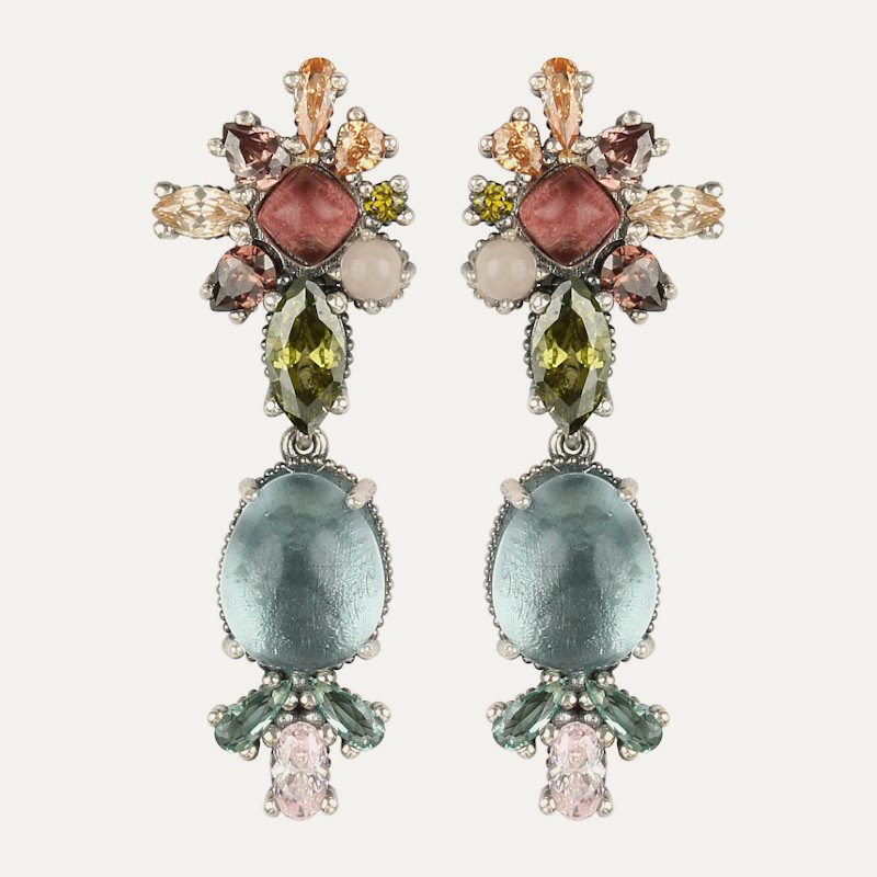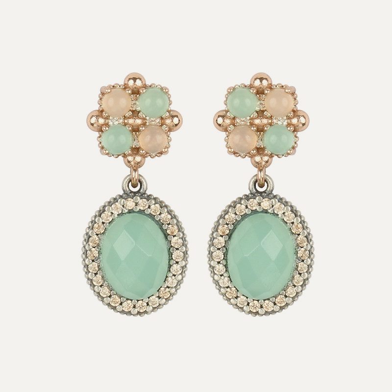 Pendientes de plata de ley 925, calcedonia, citrino, cuarzo pink fantasy y circonitas.