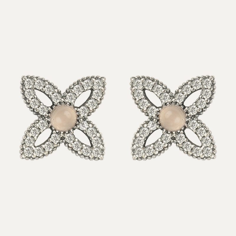 Pendientes de plata de ley 925 con cuarzo rosa y circonitas.
