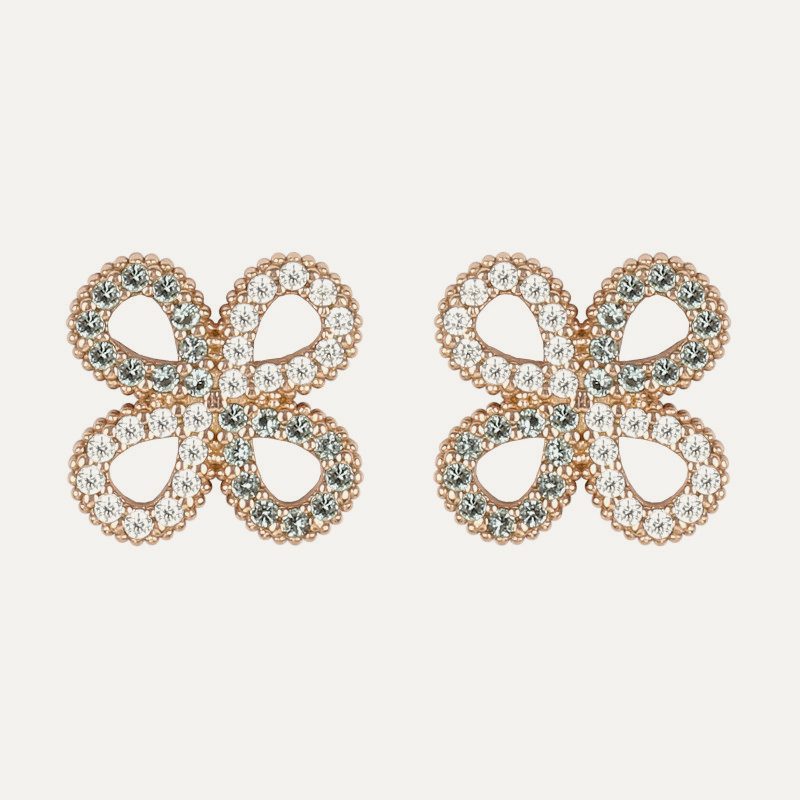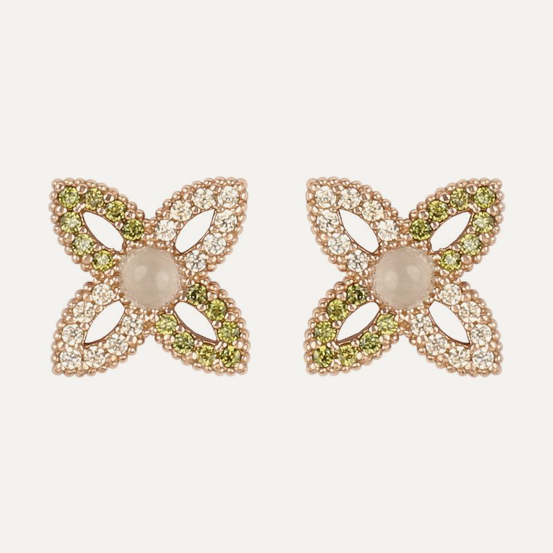 Pendientes de plata de ley 925, cuarzo rosa y circonitas.
