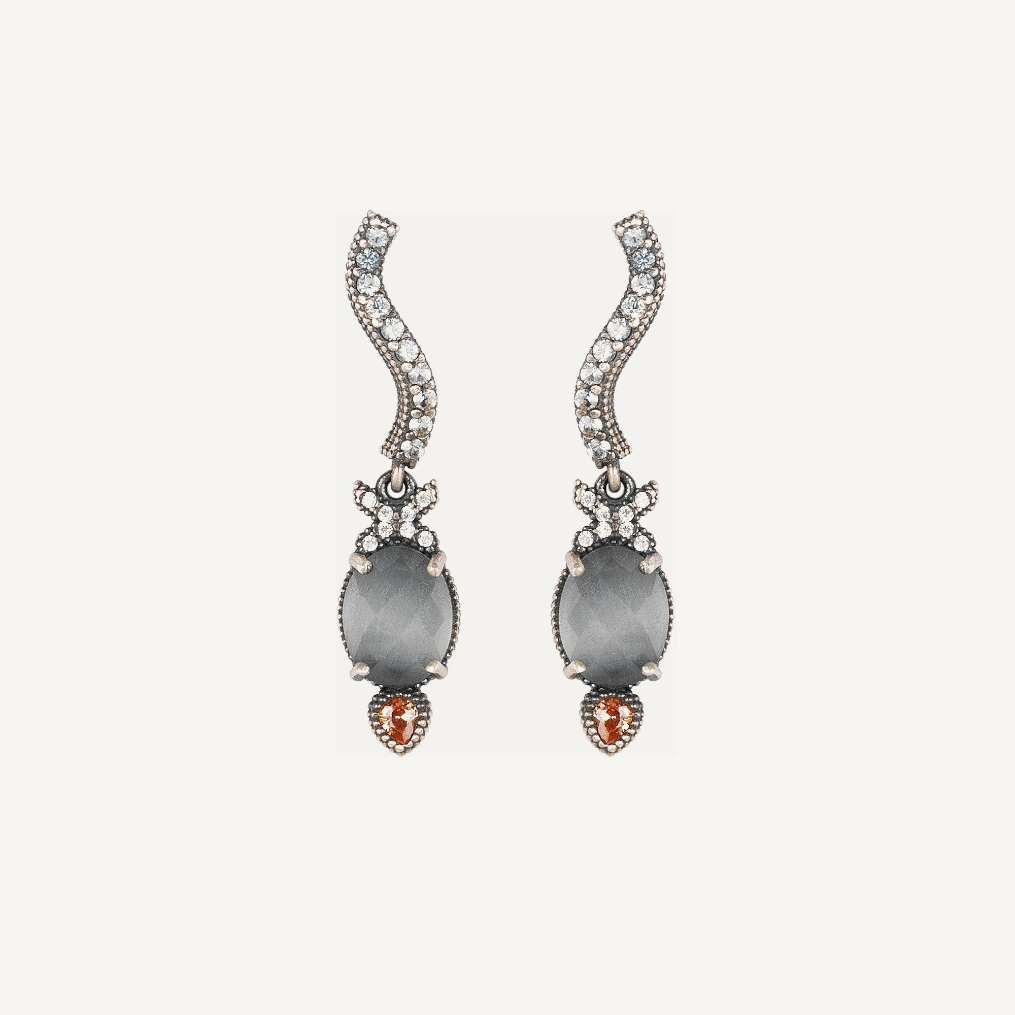 Pendientes de plata de ley 925 con acabado envejecido, cuarzo gris y circonitas.