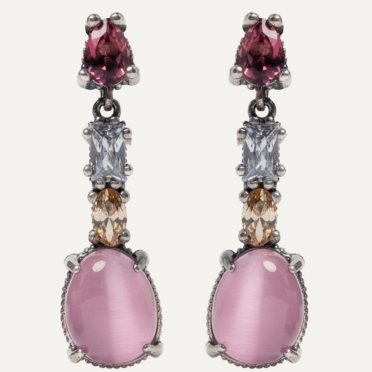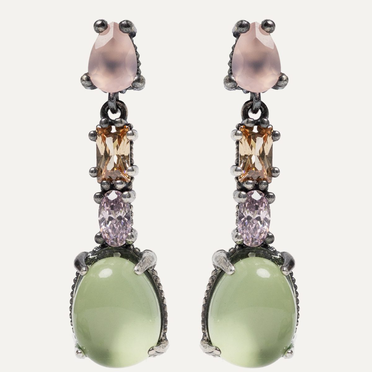 Pendientes de plata de ley 925 con cuarzos y circonitas. Disponible en varios colores.