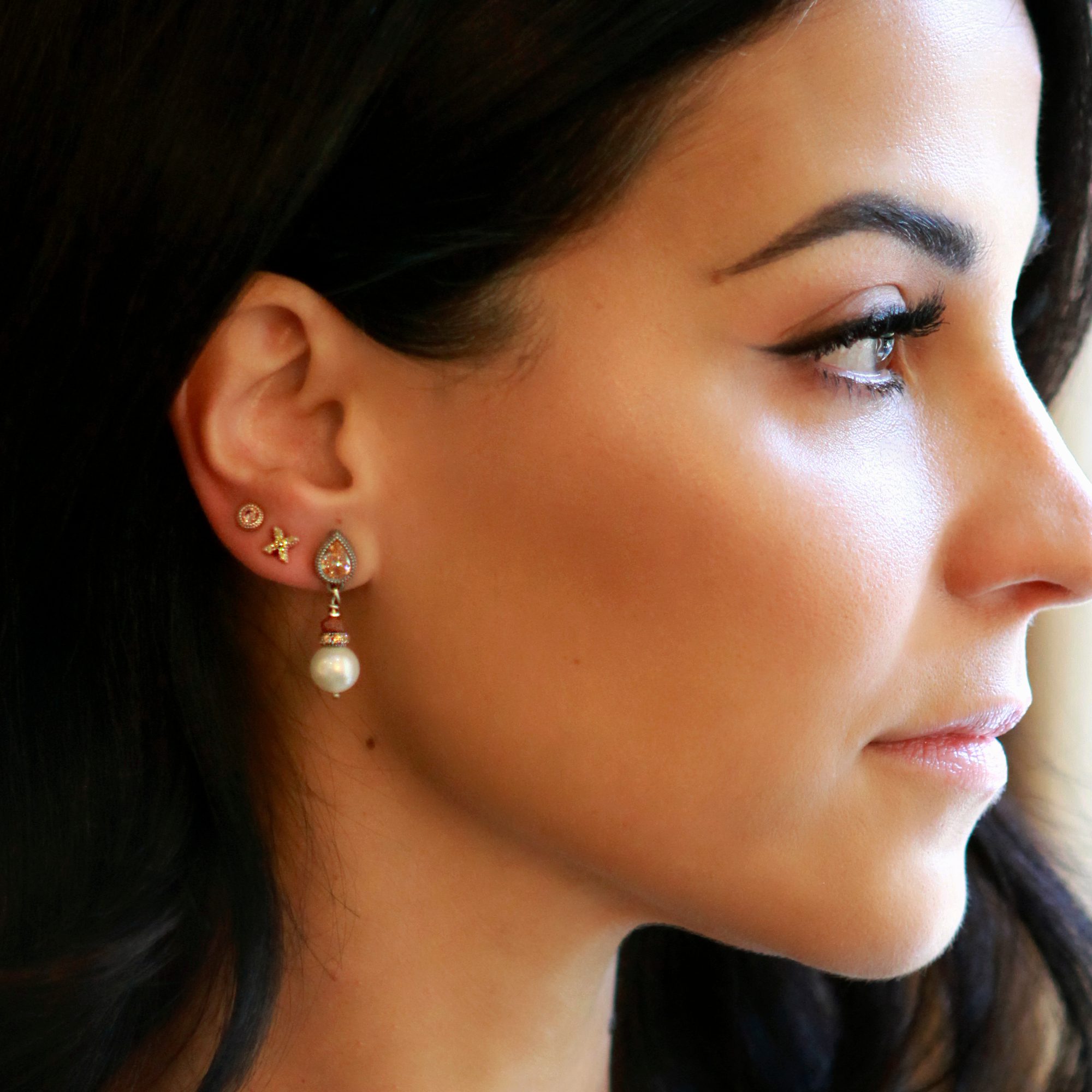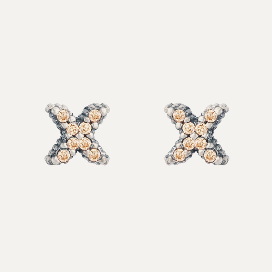 Pendientes de plata de ley 925 con baño de oro rosa de 24 kt, cuarzos y circonitas.