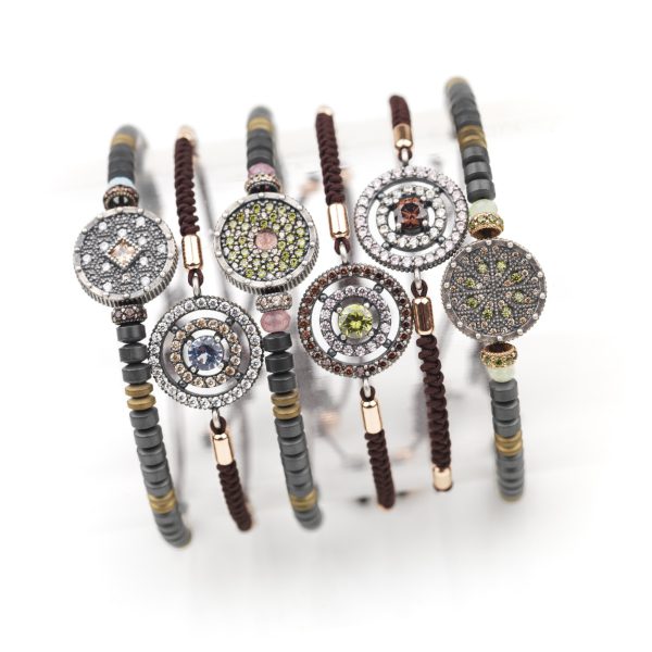 Pulsera de plata de ley 925 con circonitas, cuentas de cristal, hematites y nylon.
