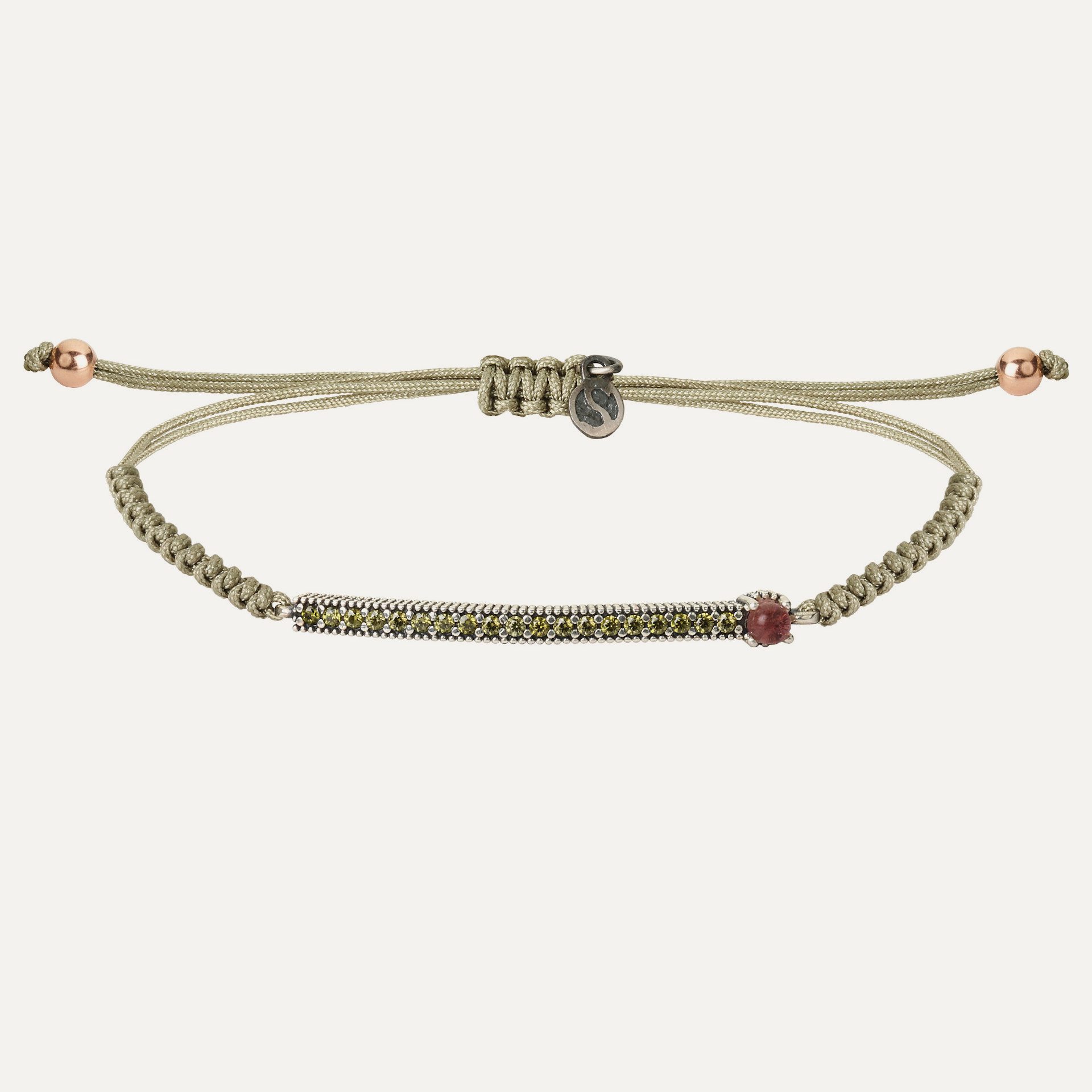 Pulsera de plata de ley 925, turmalina rosa, circonitas y nylon.