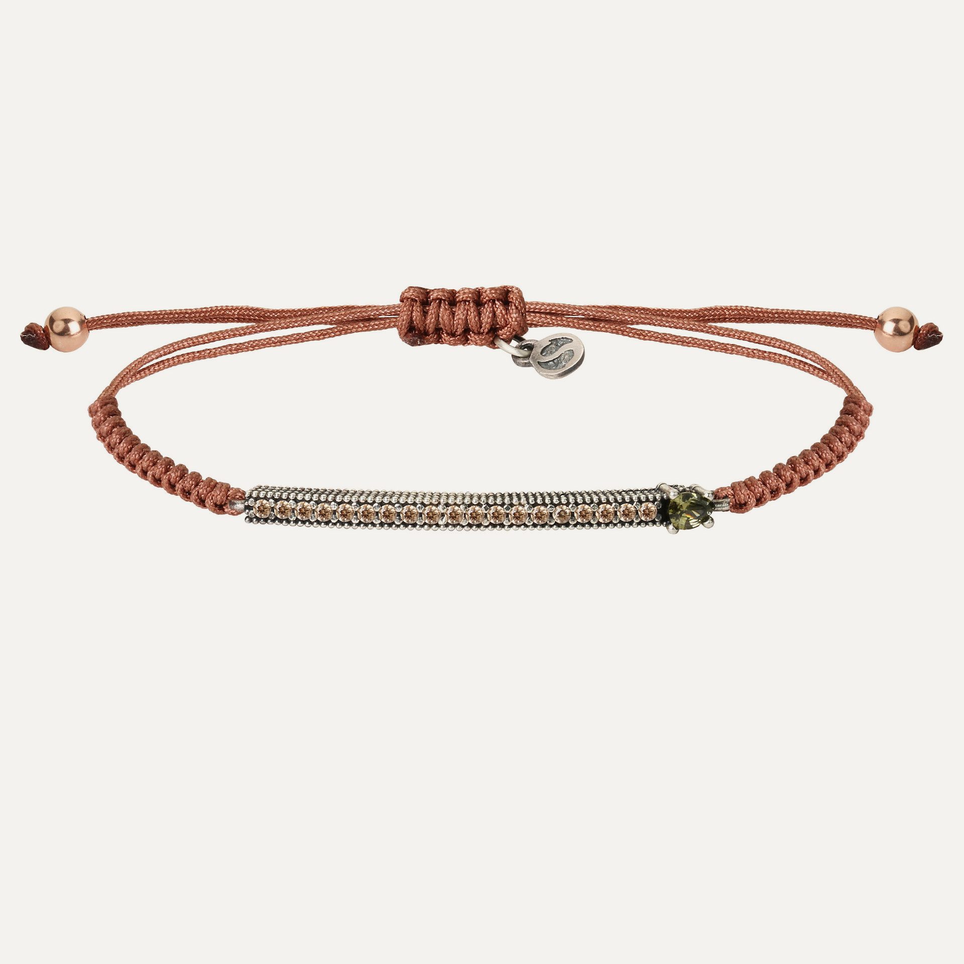 Pulsera de plata de ley 925 con baño de oro rosa de 24kt, cuarzo en diferentes colores, circonitas y nylon.