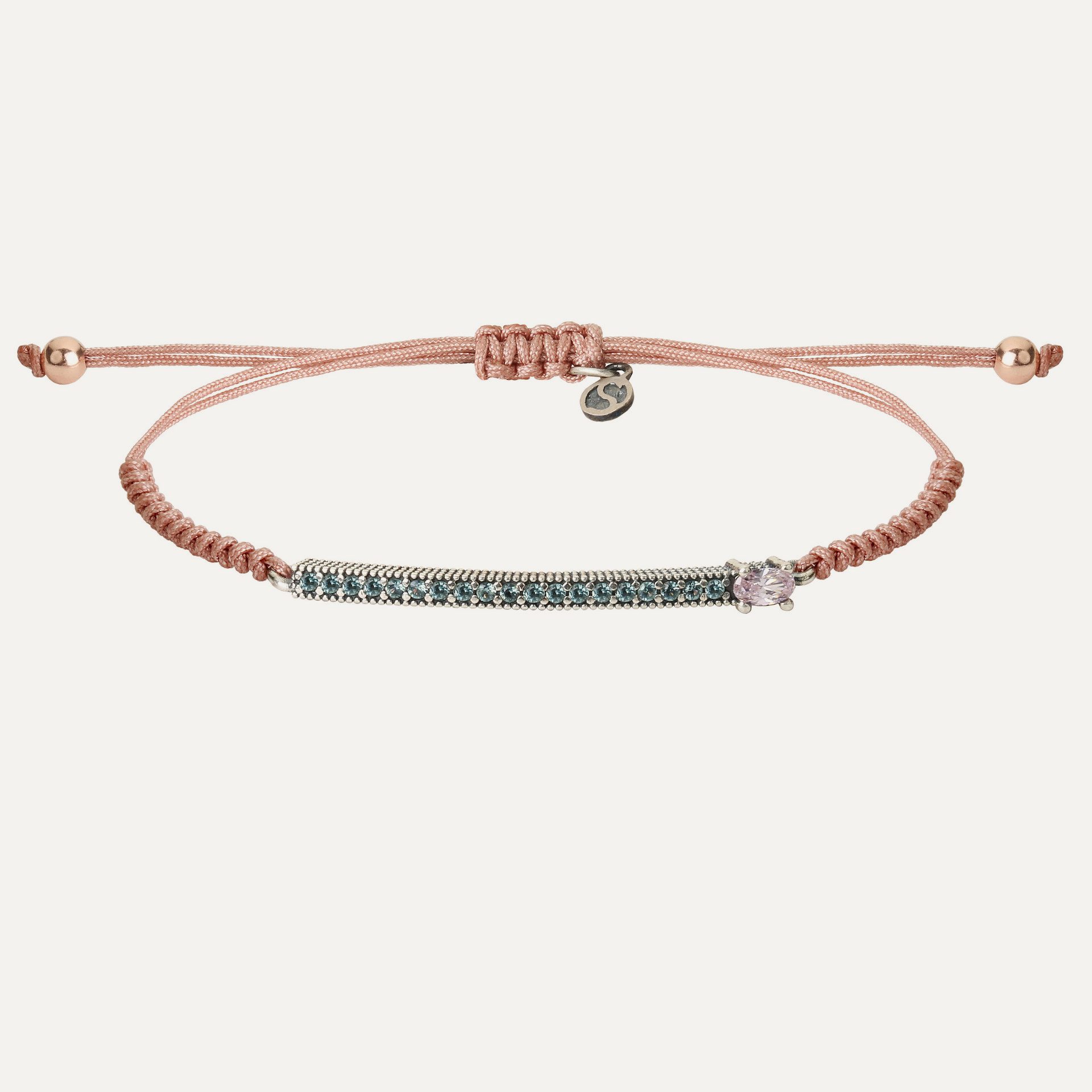 Pulsera de plata de ley 925, cuarzo pink fantasy, circonitas y nylon.