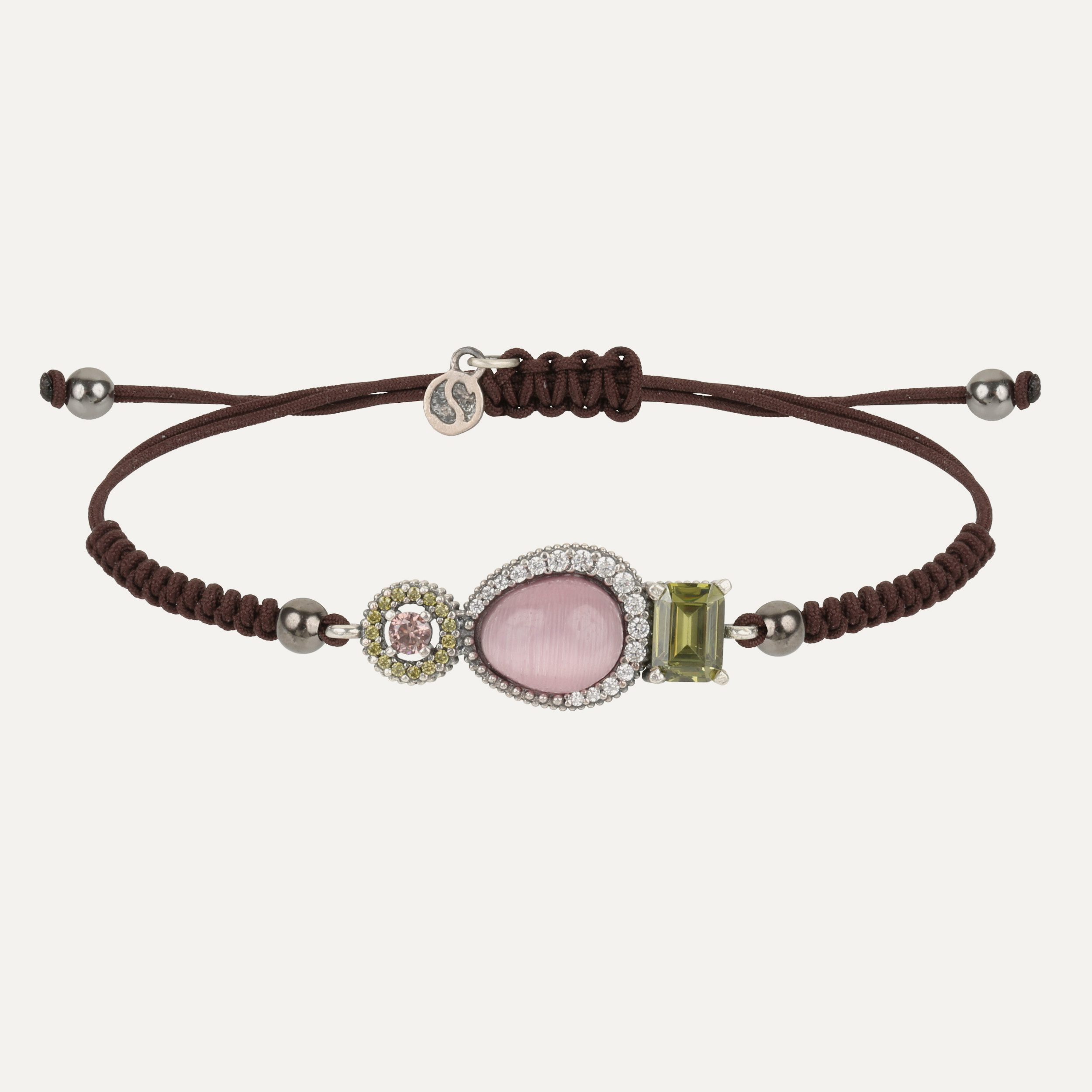Pulsera de plata de ley 925, cuarzo pink fantasy, circonitas y nylon.
