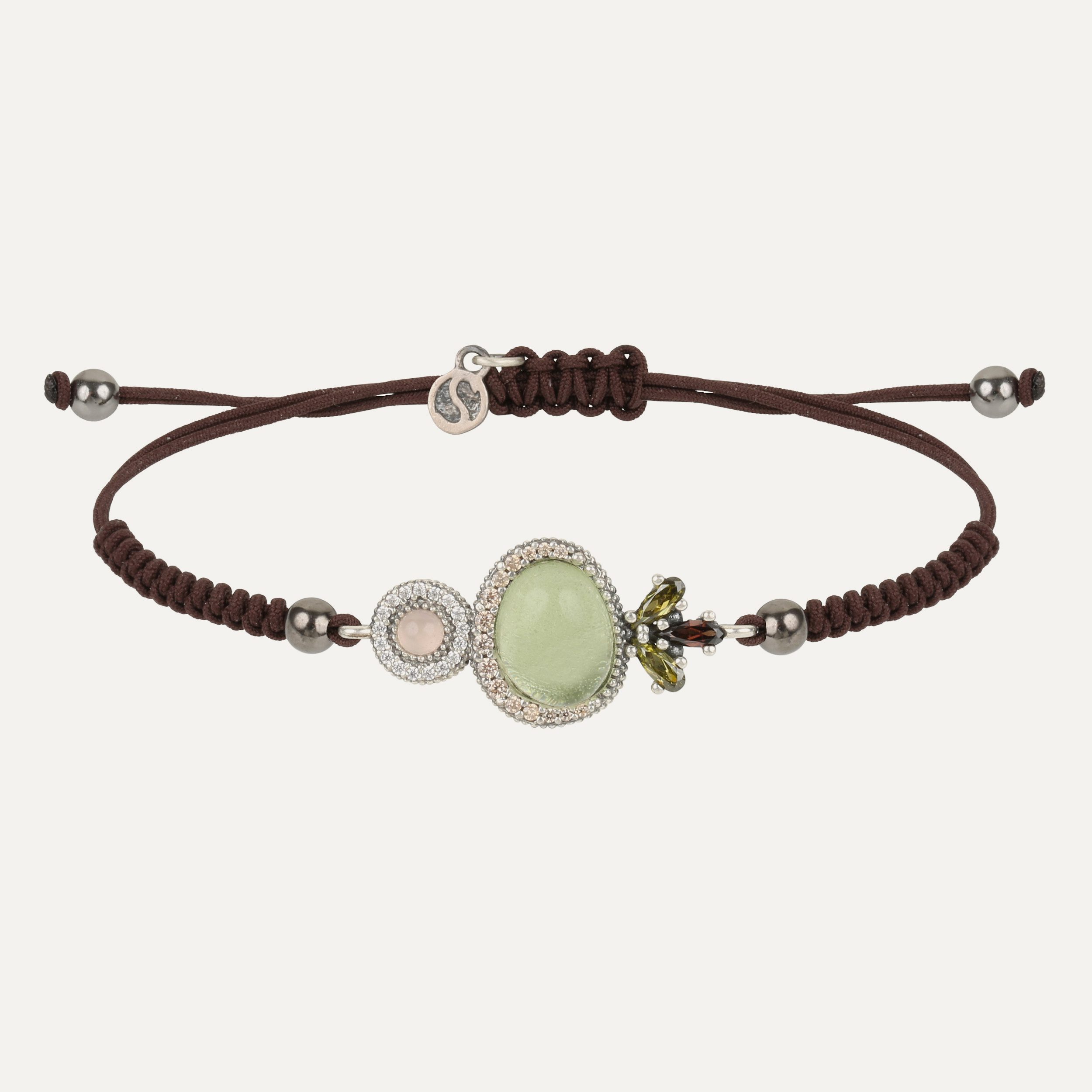 Pulsera de plata de ley 925, cuarzo apple, cuarzo rosa, circonitas y nylon.
