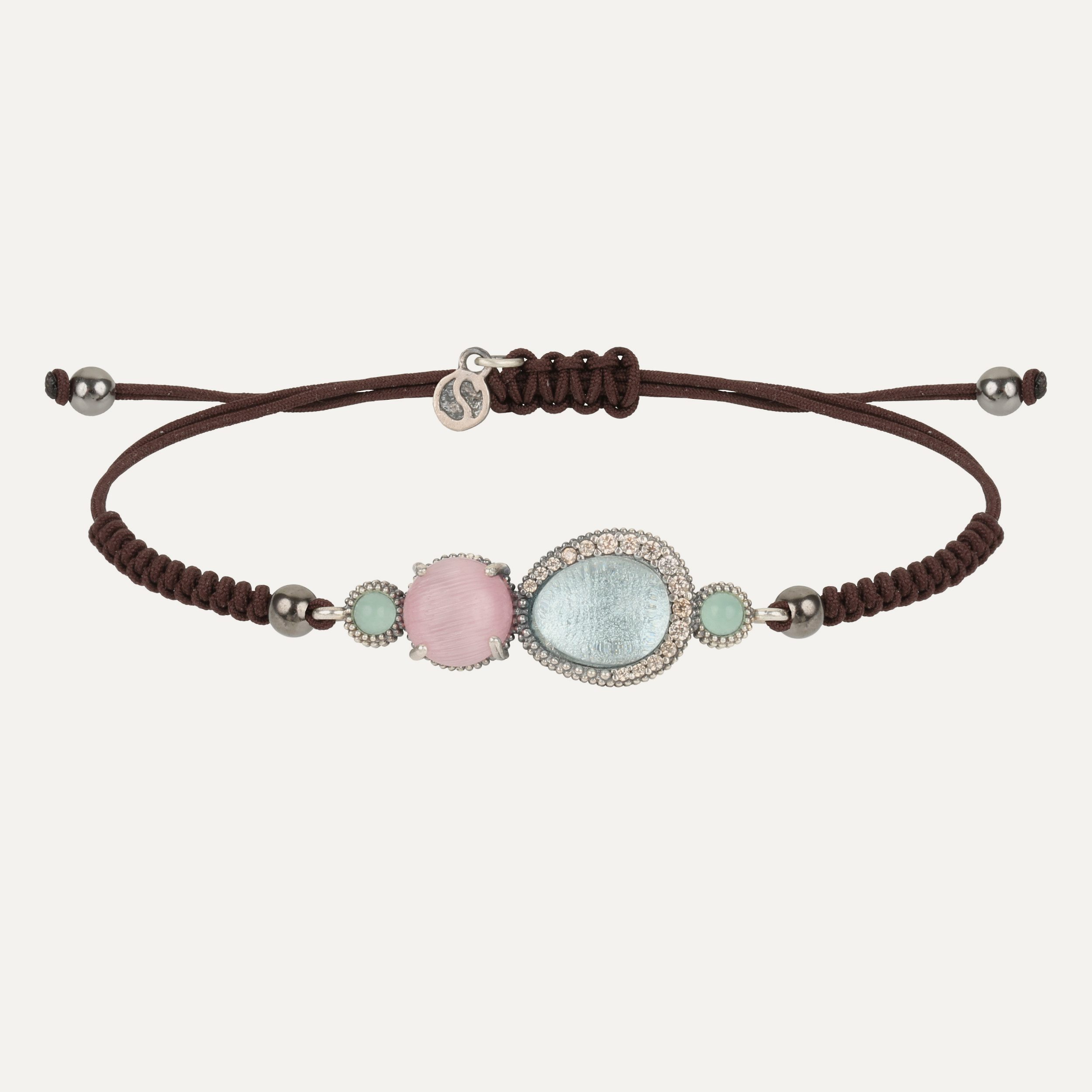 Pulsera de plata de ley 925 con aguamarina, calcedonia, cuarzo pink fantasy, circonitas y nylon.