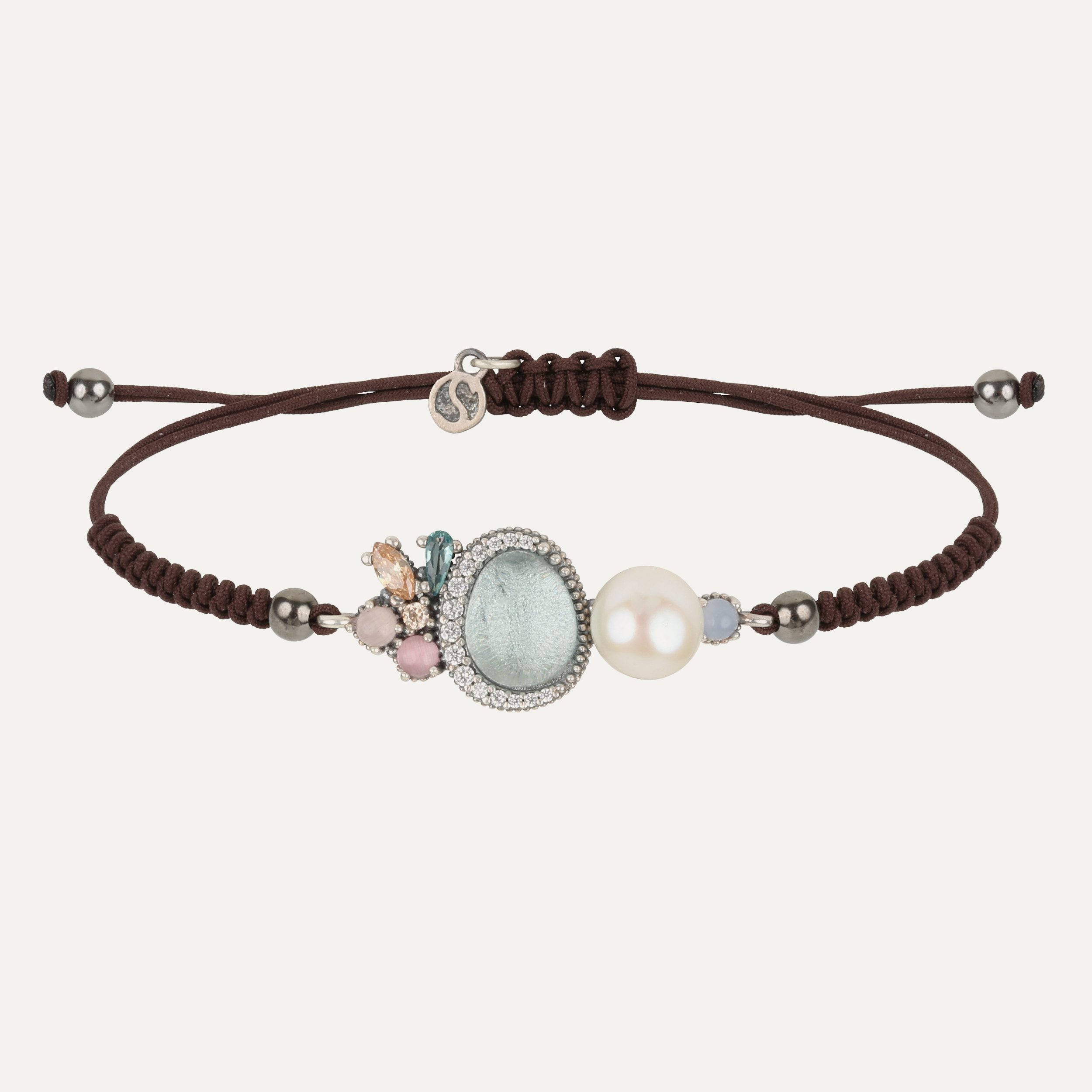 Pulsera de plata de ley 925, aguamarina, perla, cuarzo rosa, calcedonia azul, circonitas y nylon.
