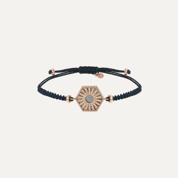 Pulsera de plata de ley 925 con baño de oro rosa de 24 kt, circonitas y nylon.