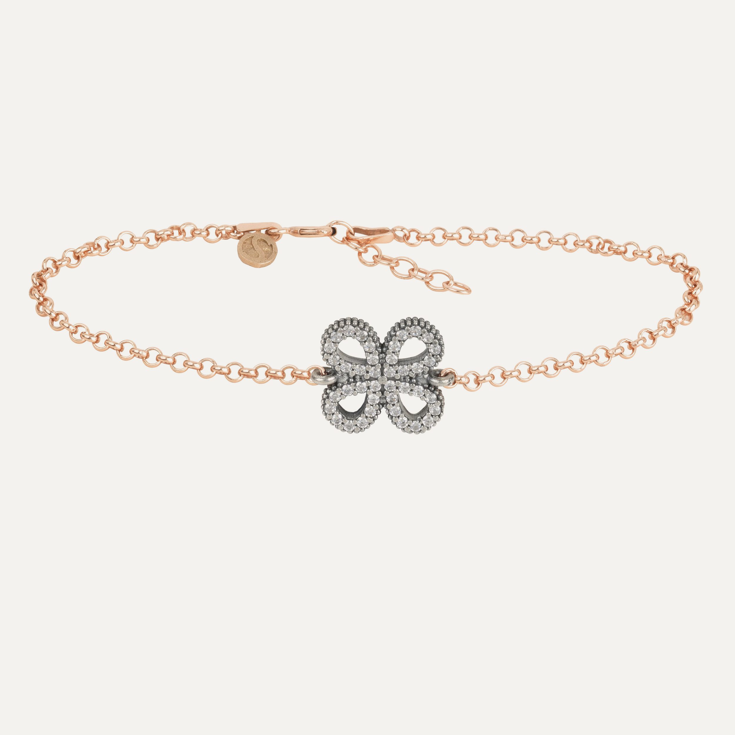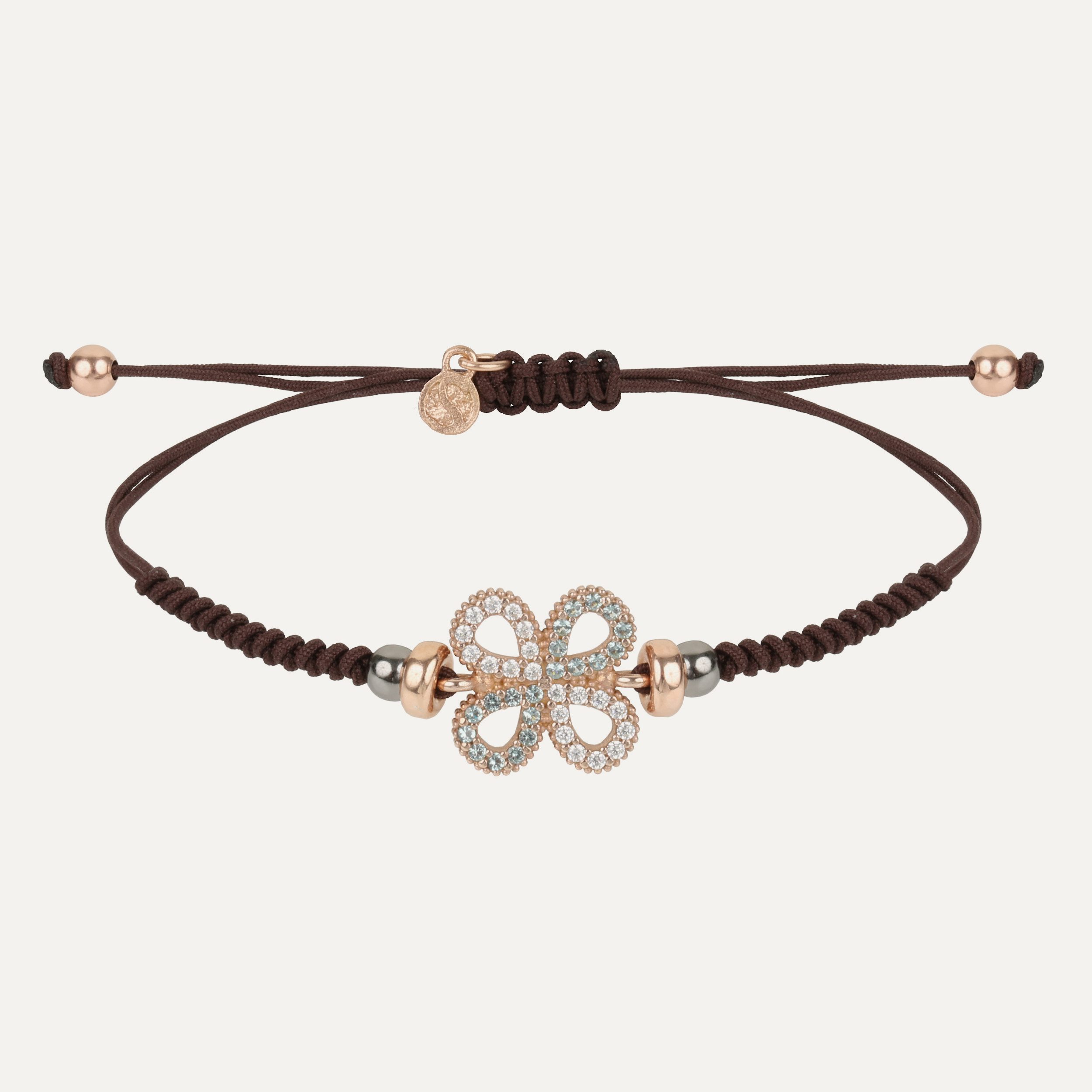 Pulsera de plata de ley con baño de oro rosa de 24 kt, circonitas, cuentas de cristal, hematites y nylon.