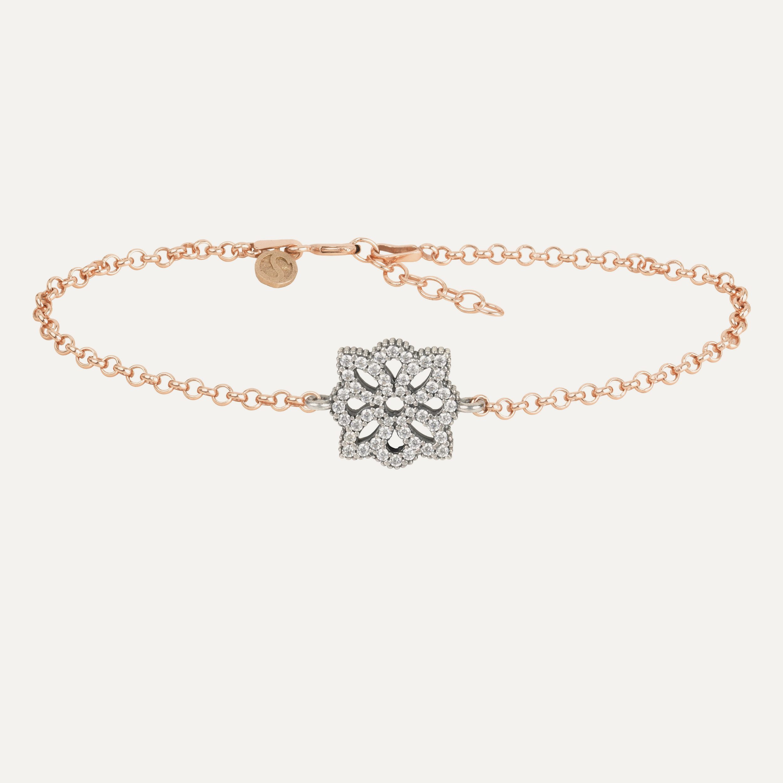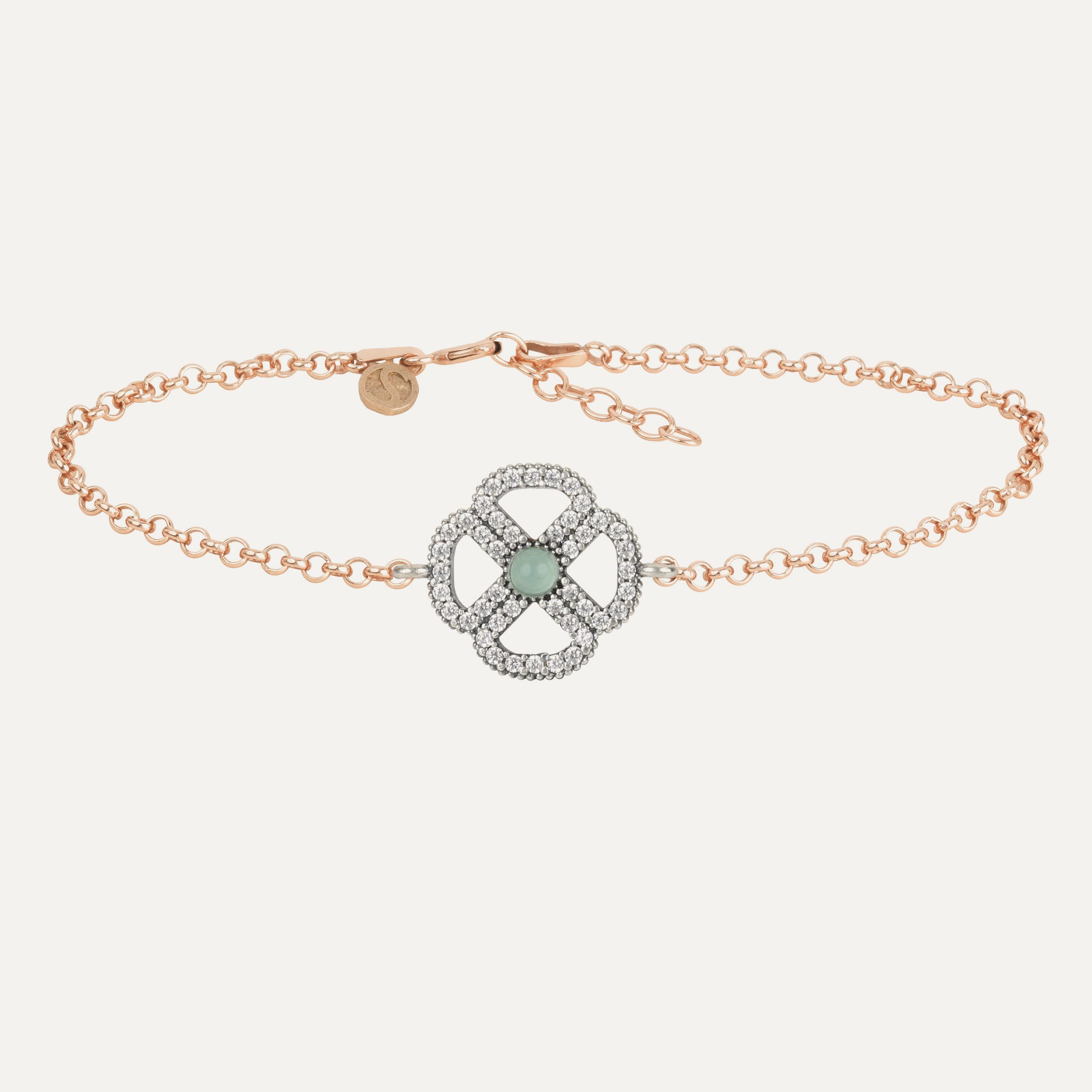 Pulsera de plata de ley 925 con cuarzo rosa y circonitas.