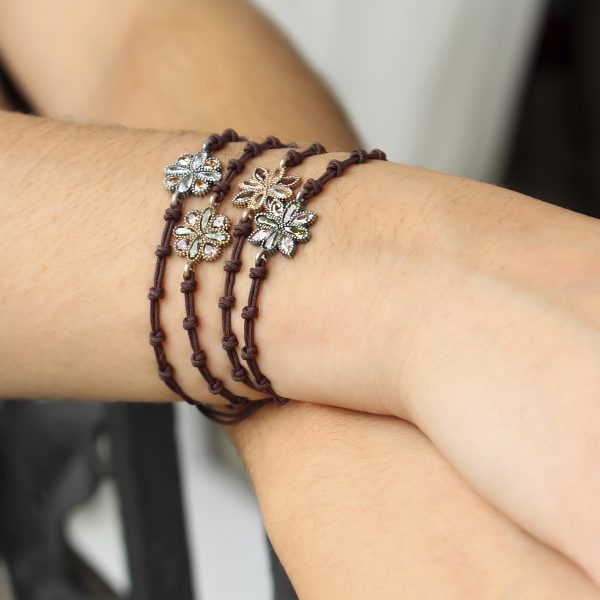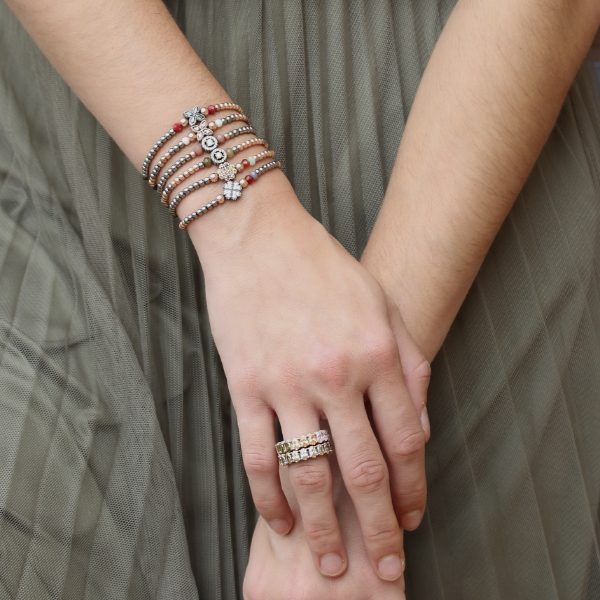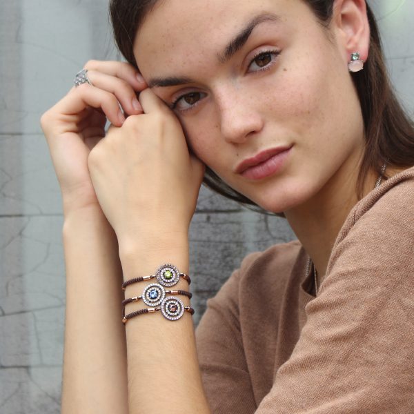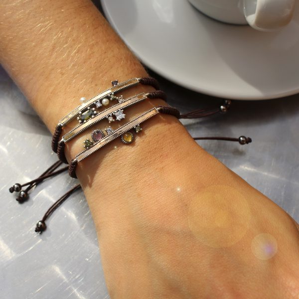 Pulsera de plata de ley 925 con circonitas y nylon. Lo podrás encontrar en dos combinaciones de colores, y dos acabados.