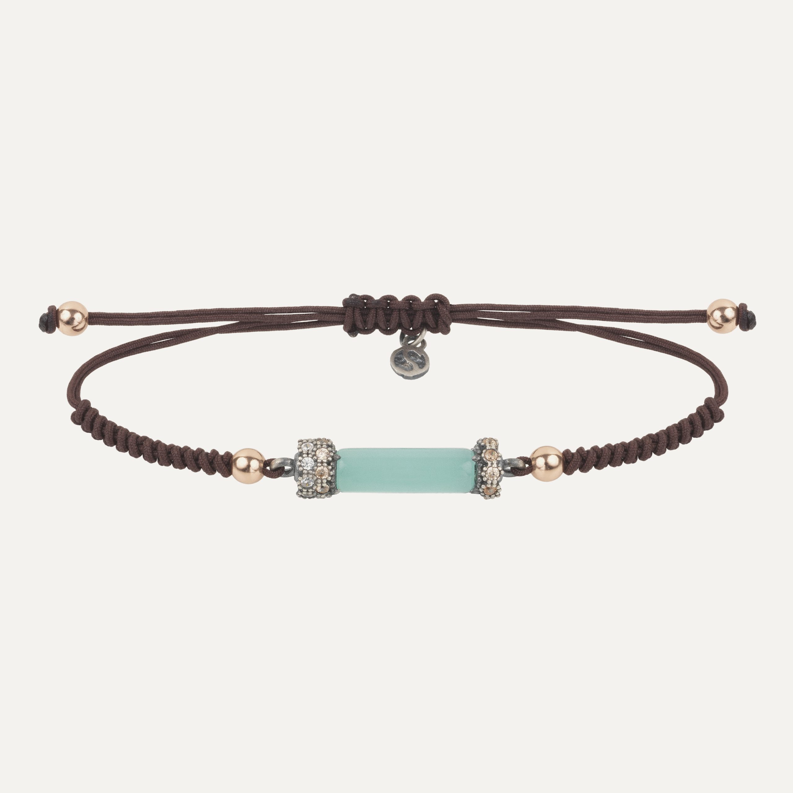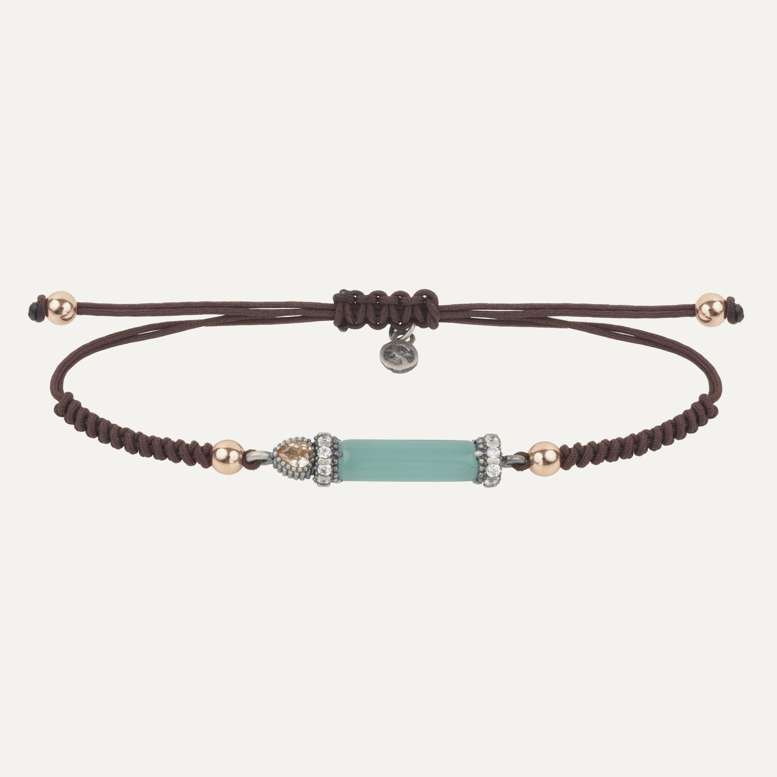 Pulsera de plata de ley 925, calcedonia, circonitas y nylon.