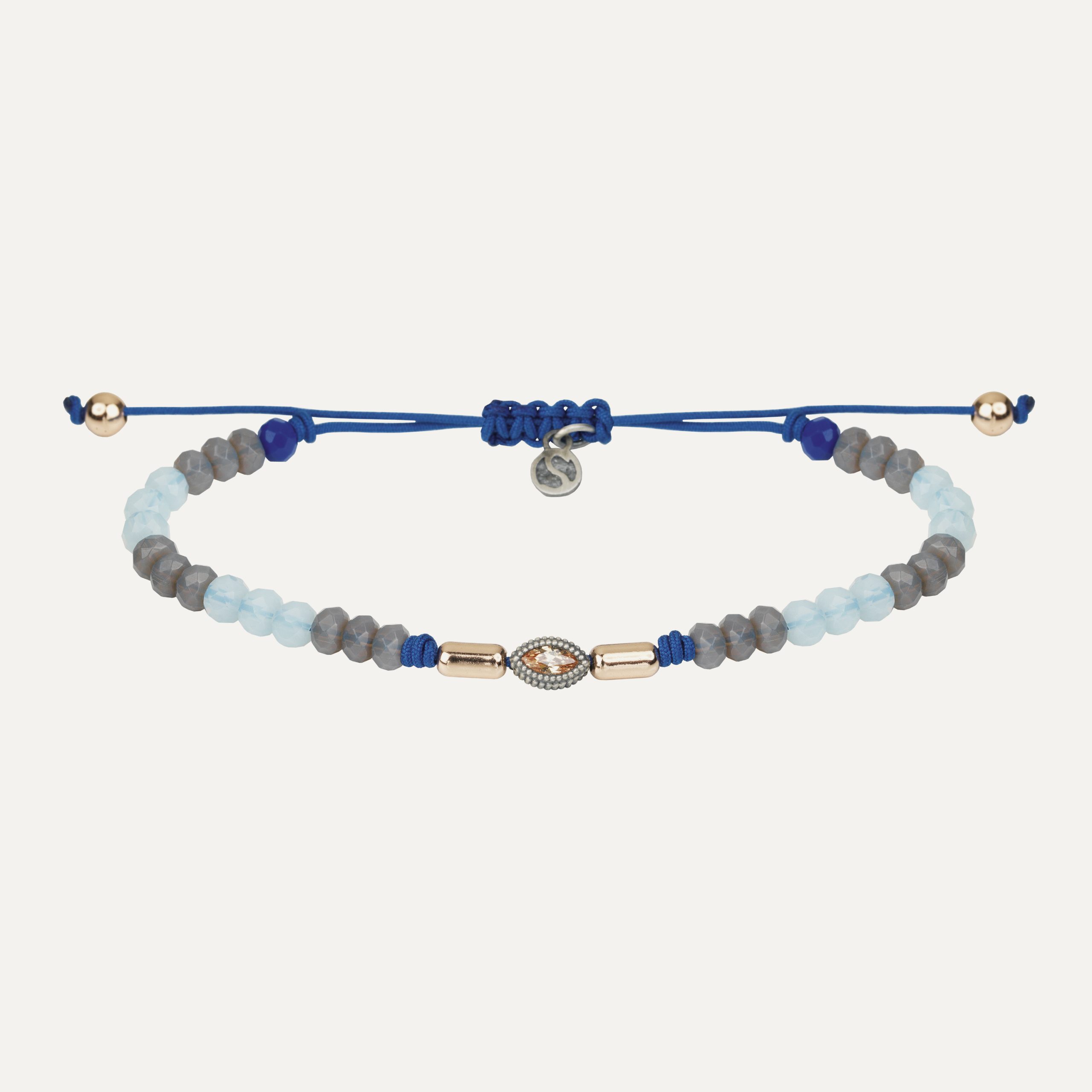 Pulsera de plata de ley 925 con acabado envejecido, circonitas y nylon.